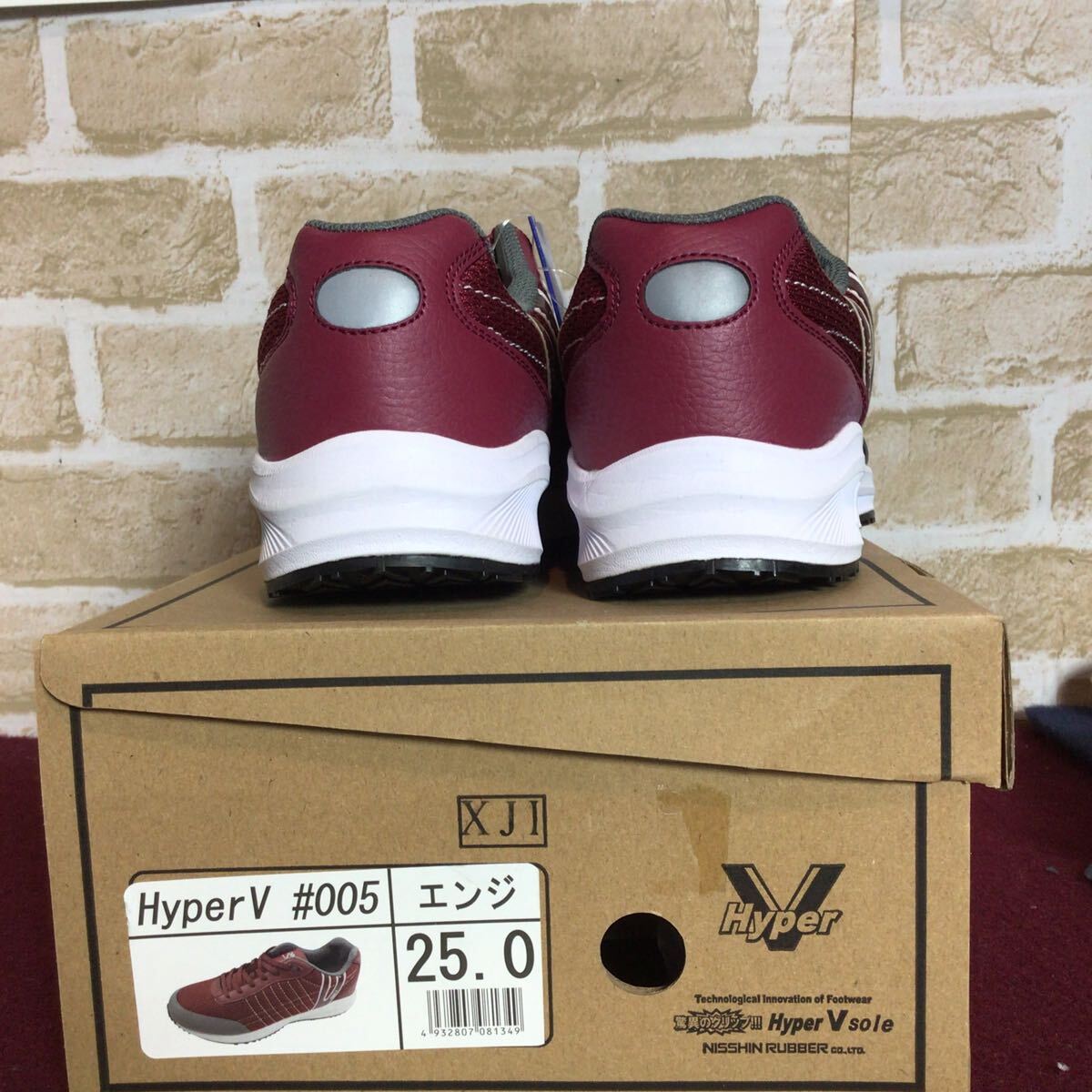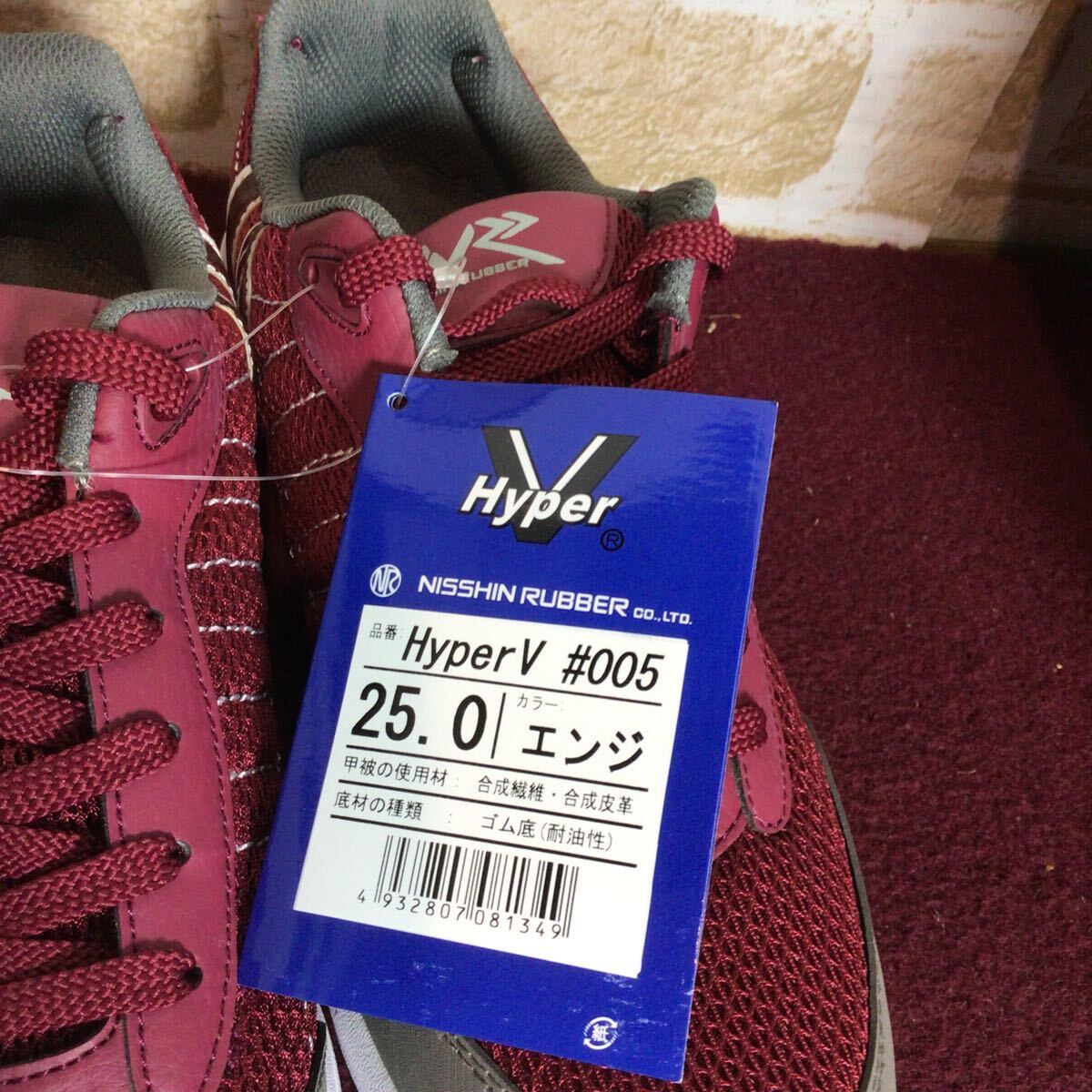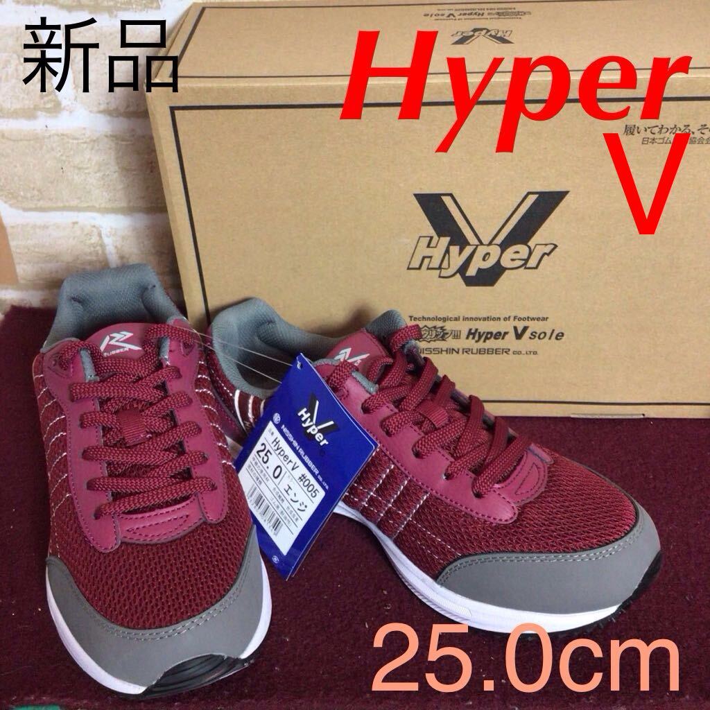 【売り切り!送料無料!】A-376 HYper V!スニーカー!エンジ!25.0cm!先芯なし作業履!滑らない!!普段ばき!箱付き!新品未使用!