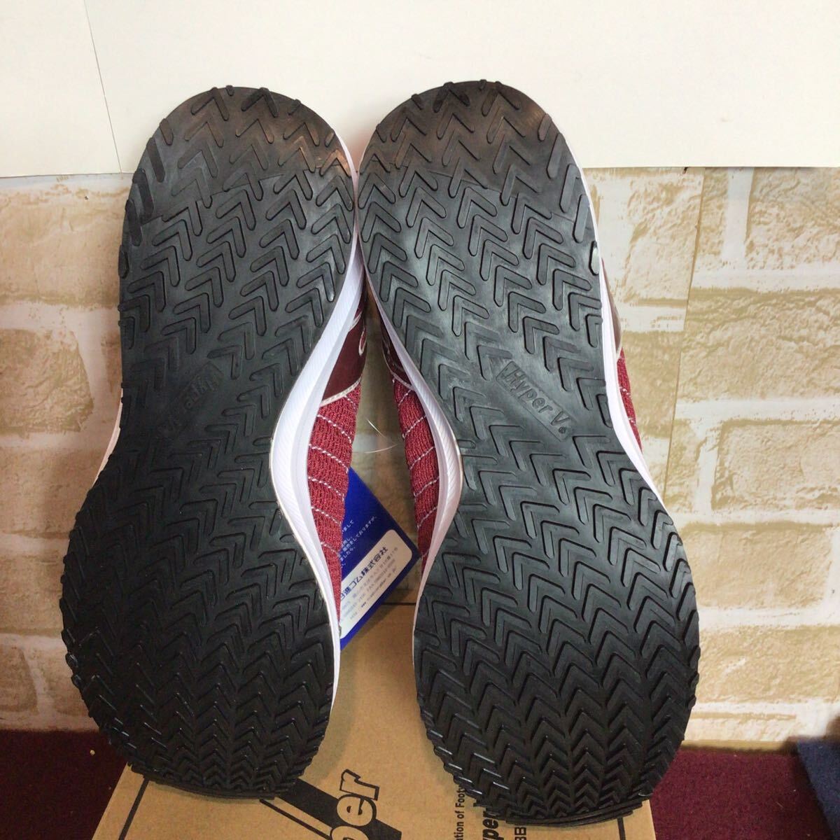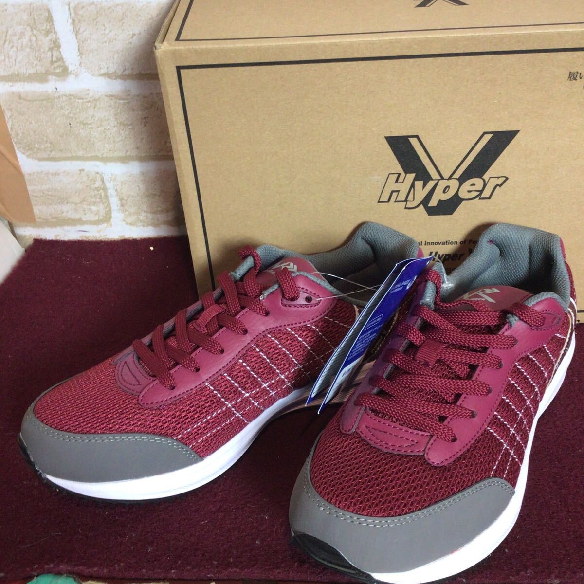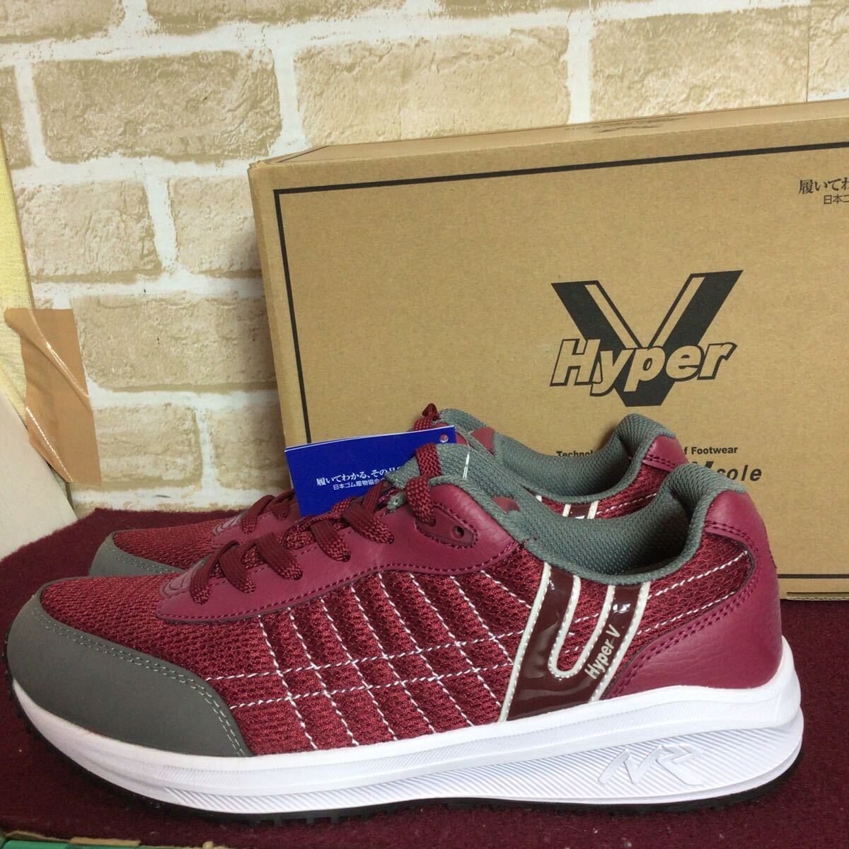 【売り切り!送料無料!】A-376 HYper V!スニーカー!エンジ!25.0cm!先芯なし作業履!滑らない!!普段ばき!箱付き!新品未使用!