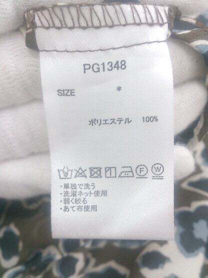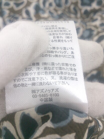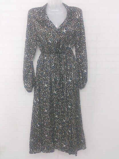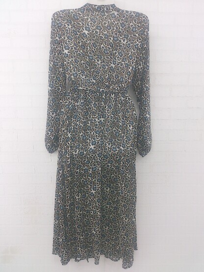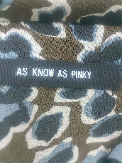 ◇ ◎ AS KNOW AS PINKY 総柄 オープンカラー 長袖 膝下丈 ワンピース カーキ ホワイト系 マルチ レディース E