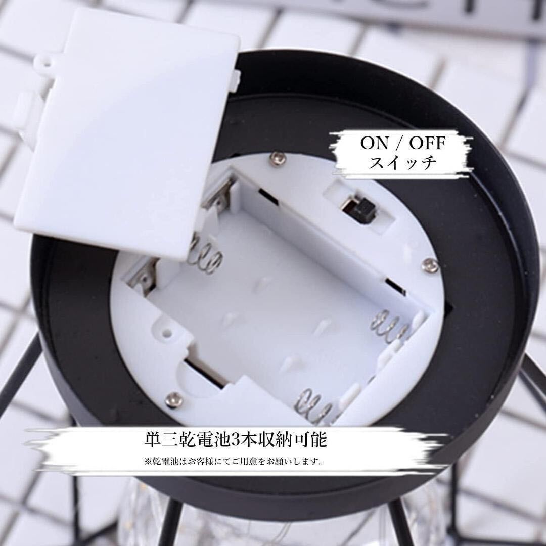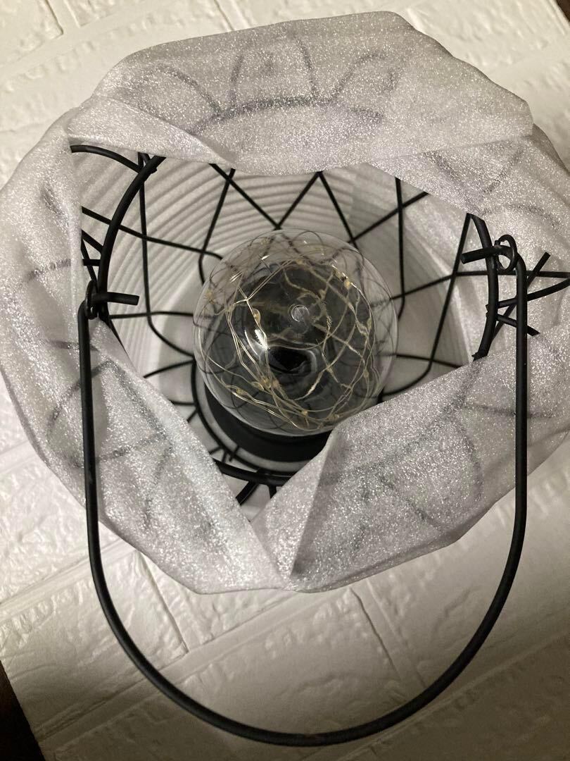【展開方法】梱包から出し電池を入れればすぐに動き出します。存在感のある黒色でどんな棚や卓上にマッチするシンプルなデザイン、重量感のある金属素材が高級な雰囲気を醸し出してくれます。中の電球はプラスチックなので落下などの破損時の心配がぐっと減ります。