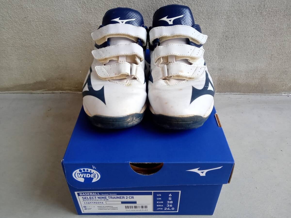 格安中古★少年野球 ミズノ トレーニングシューズ セレクトナイントレーナー2 ネイビー紺 24cm★ジュニア野球 トレシュー 傷み汚れあり現状