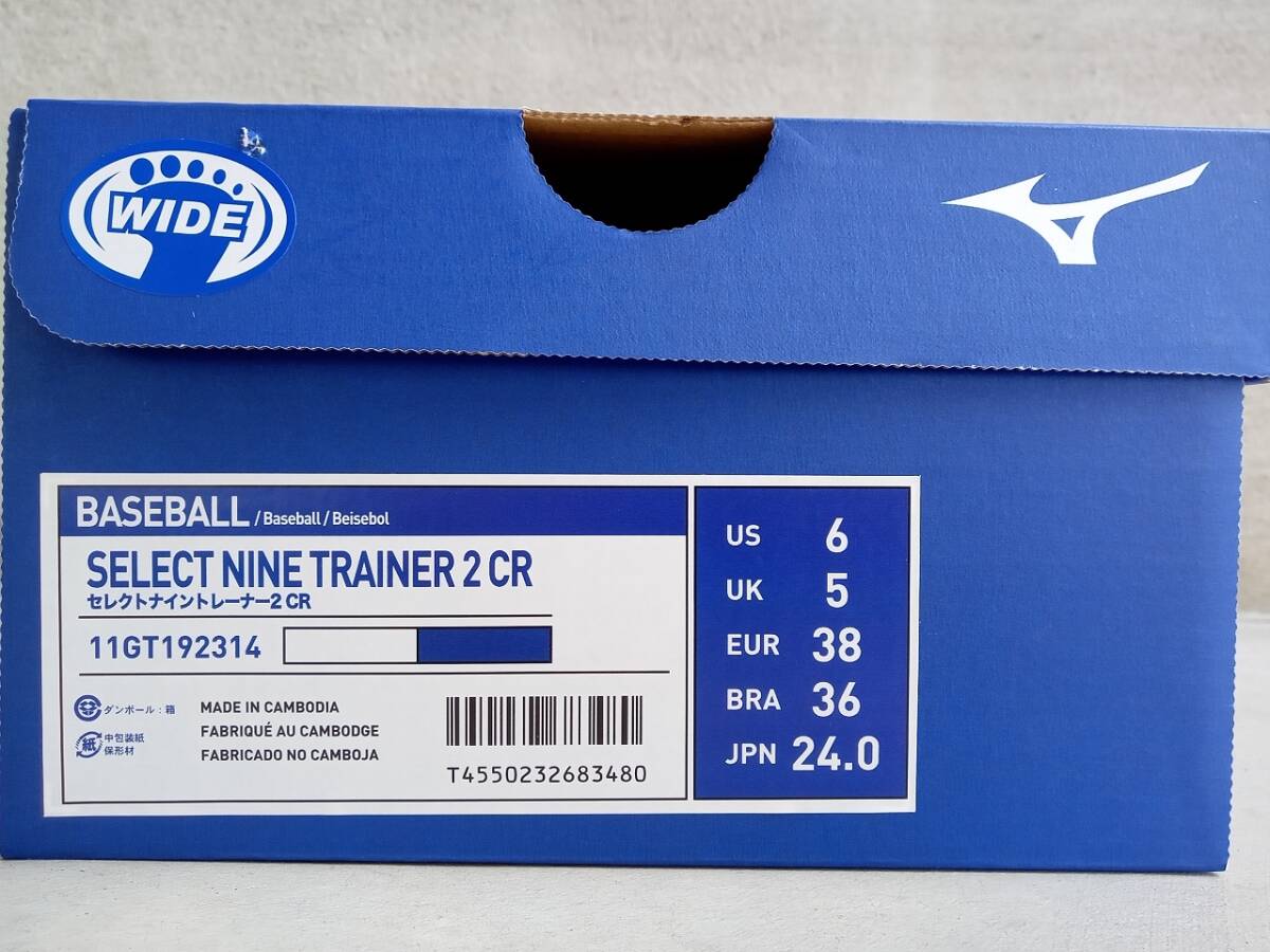 ミズノ、セレクトナイントレーナー2CR 24.0cm、カラーはホワイト×ネイビーです。