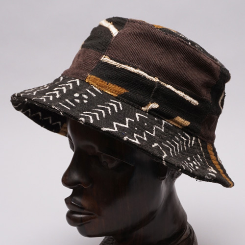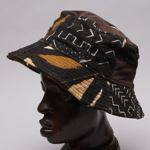 アフリカの泥染め布を使いタイで丁寧に加工したおしゃれなパッチワークハットです。