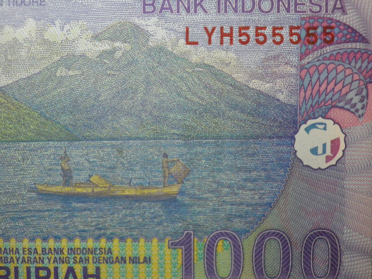 珍番 インドネシア 2000年 1000Rp LKH555555 未使用