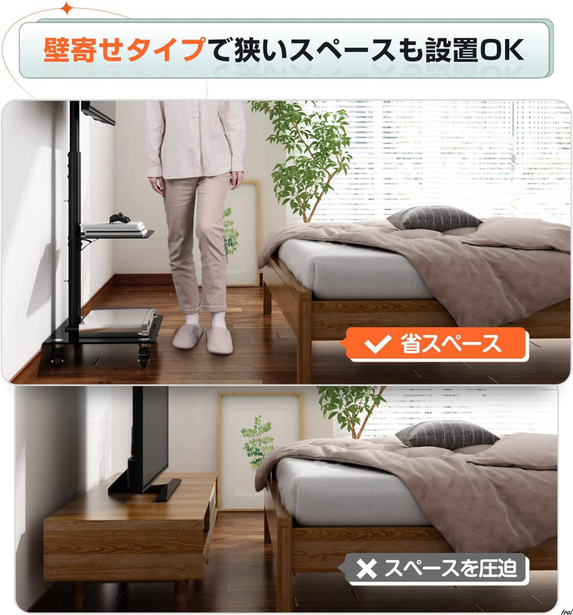 VESA規格(テレビ背面のネジ穴間の距離)は10x10cmから60x40cmまで対応可能です。
