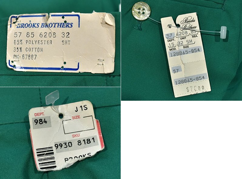 デッドストック【USA製】ビンテージ【Brooks Brothers】【ブルックスブラザーズ】緑【ポリコットンスラックス】【W32】CK1401-10-DE11