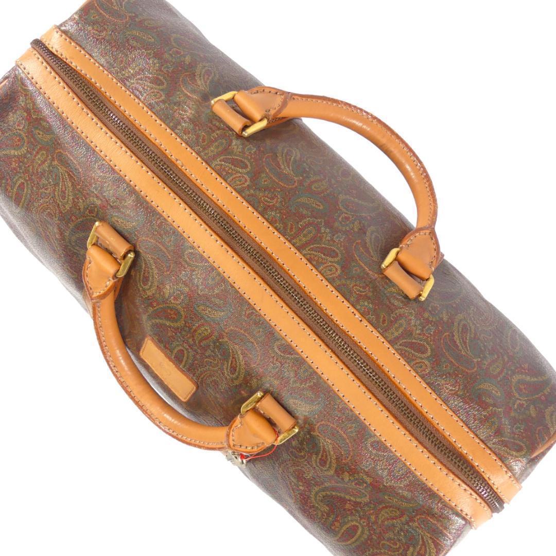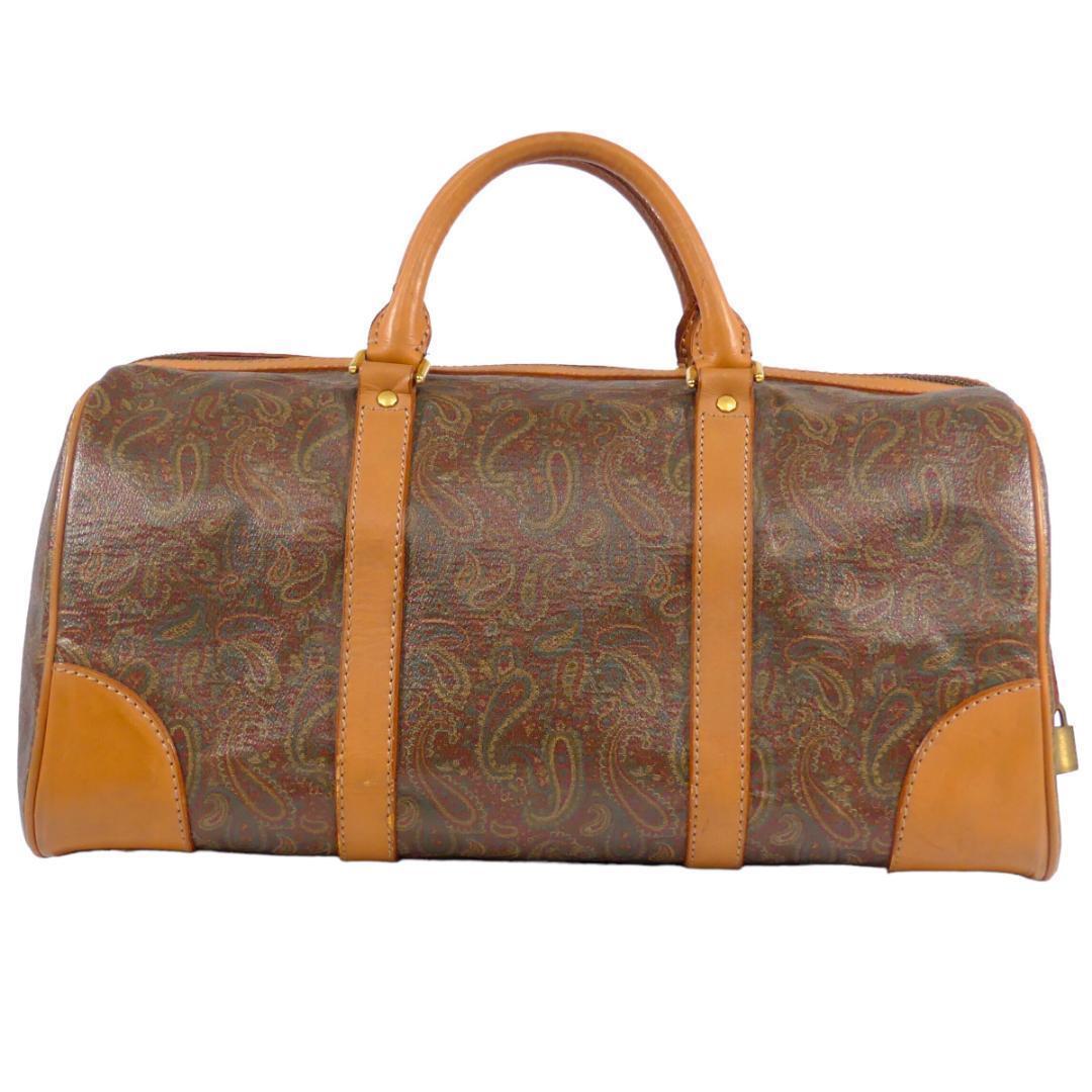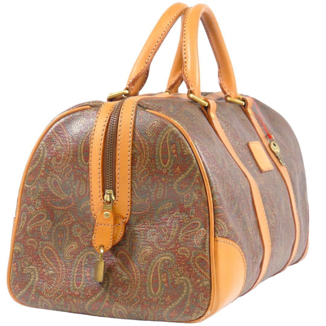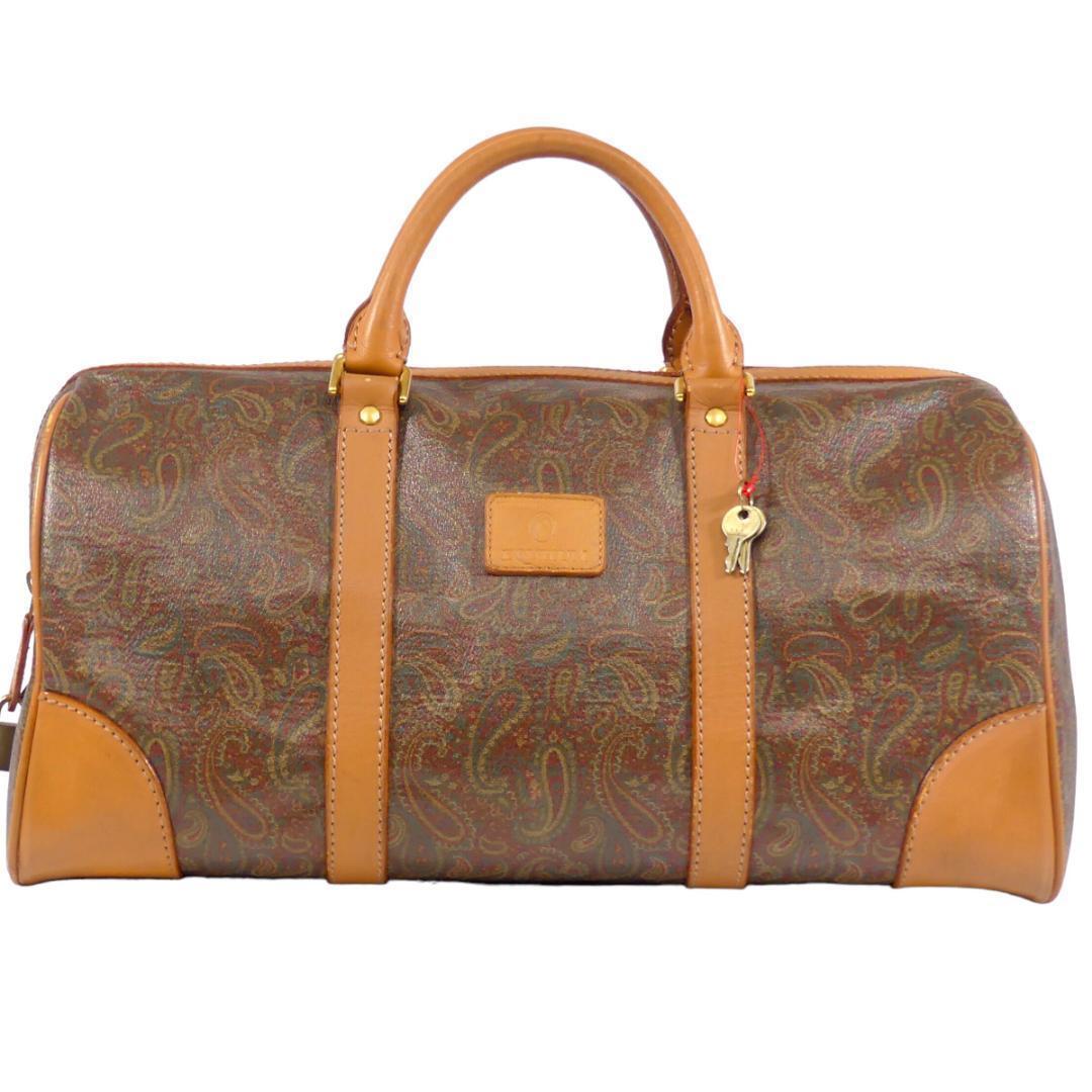 即決★EQUITUM★レザーコンビボストンバッグ エクィトゥム 茶 ペイズリー柄 本革 トラベルバッグ 本皮 旅行 カバン 出張 鞄 鍵付き