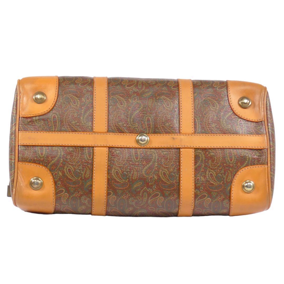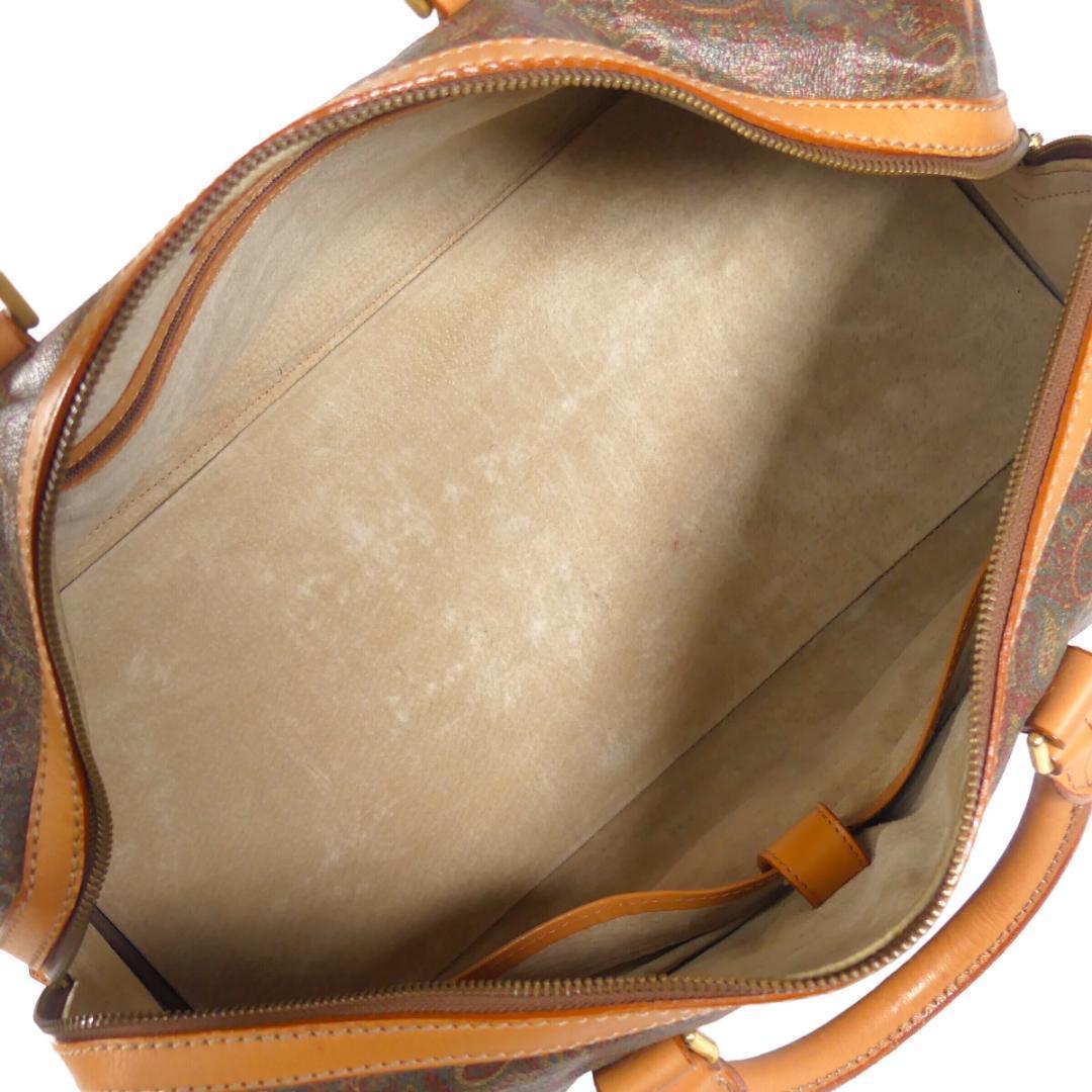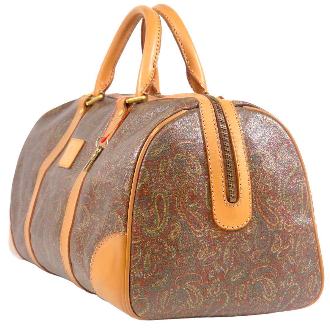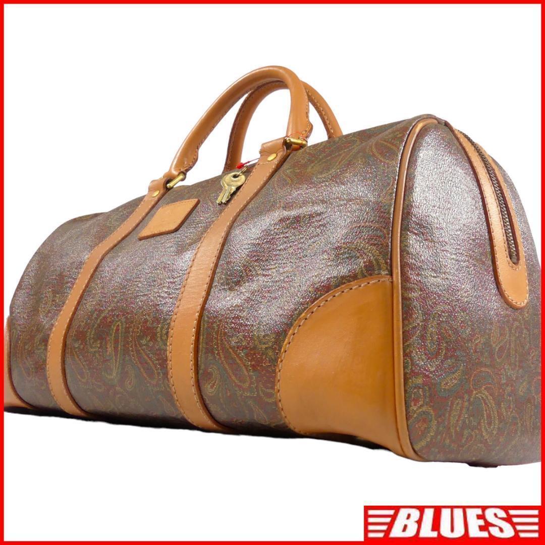 即決★EQUITUM★レザーコンビボストンバッグ エクィトゥム 茶 ペイズリー柄 本革 トラベルバッグ 本皮 旅行 カバン 出張 鞄 鍵付き