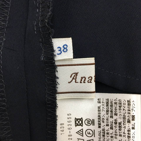 アナトリエ ANATELIER パンツ ガウチョ ワイド クロップド ラップ風 ウエストゴム 無地 38 紺 ネイビー レディース