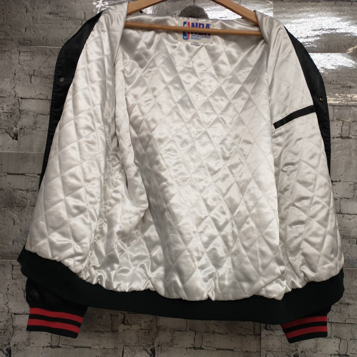 | 90s NBA CHICAGO BULLS シカゴ・ブルズ スタジャン ブルゾン サイズL ブラック ・襟汚れあり ・袖周り汚れあり ・内側に汚れあり ・腕にスレあり、汚れあり ・全体的にスレあり |