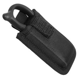 専用のナイロンシースが付属。シースは車のサンバイザーなどに取り付けられるよう、背面が長いゴムバンドとなっています。