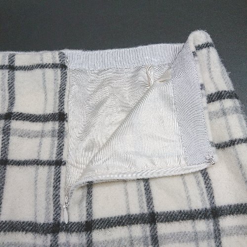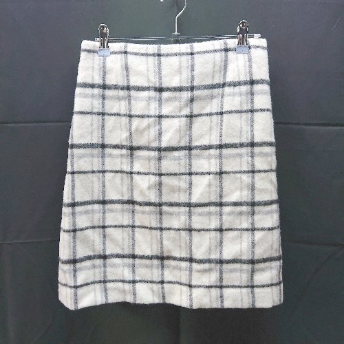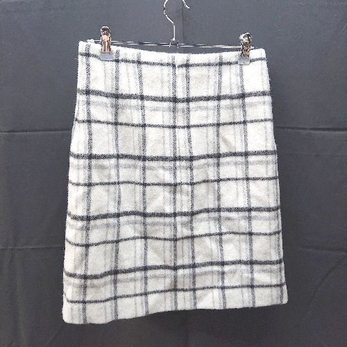 ◇ ROPE ロペ サイドジップ 起毛 裏地 チェック柄 ショート丈 タイト スカート サイズ38 クリーム系 レディース E