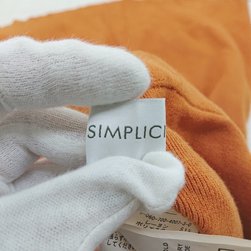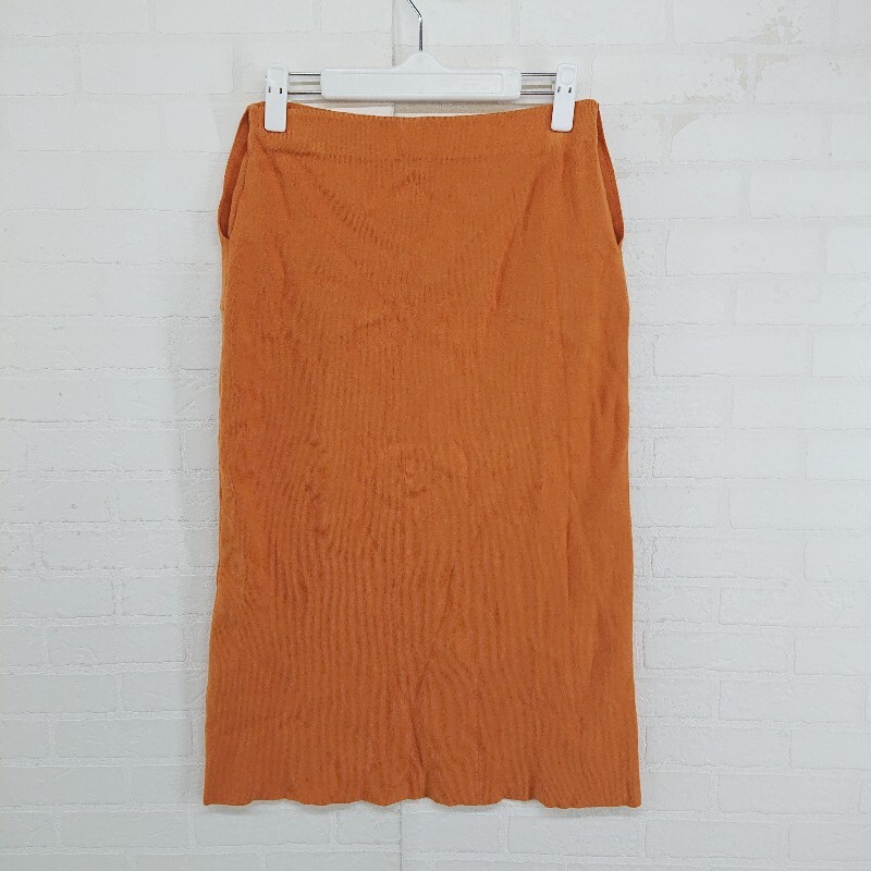 ◇ Simplicite ウエストゴム フロントスリット ニット 膝下丈 タイト スカート オレンジ レディース E