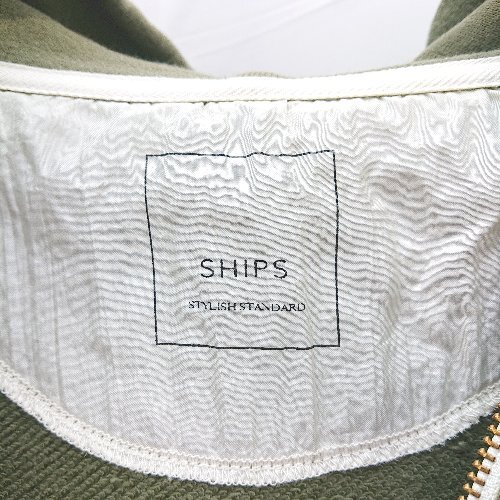 ◇ SHIPS フード フルジップ スウェット クロップド 長袖 トレーナー パーカー 38サイズ オリーブ カーキ レディース E