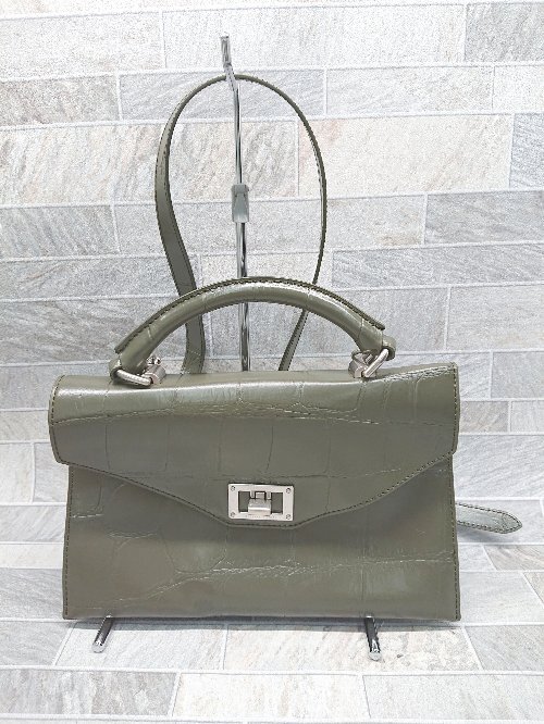 ◇ ◎ CHARLES & KEITH チャールズ&キース 2WAY キレイめ ロゴ ハンド ショルダーバッグ カーキ系 レディース P