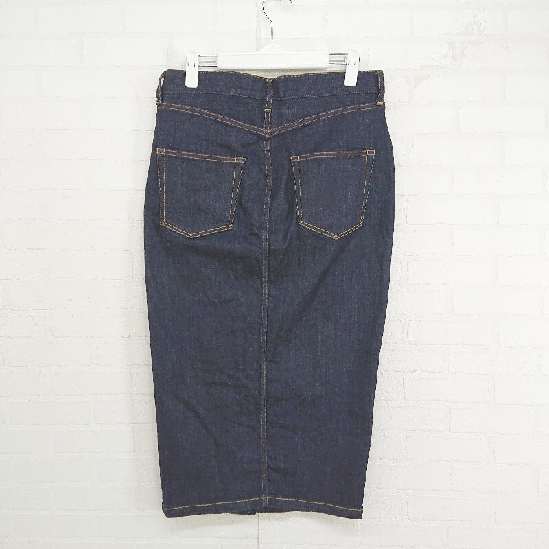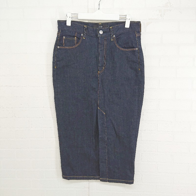 ◇ Munich ミューニック デニム ストレッチ スリット 膝下丈 ナロー スカート サイズS ネイビー系 レディース E