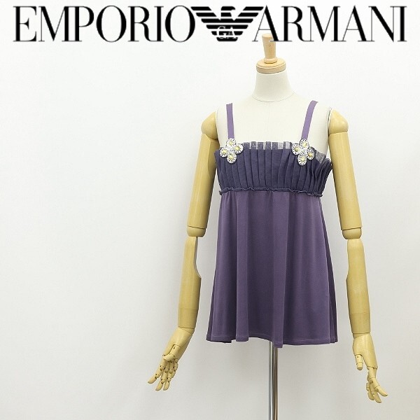 国内正規品◆EMPORIO ARMANI エンポリオ アルマーニ シルクジャージー×チュール ビジュー&ビーズ装飾 キャミソール トップス パープル 38 | |