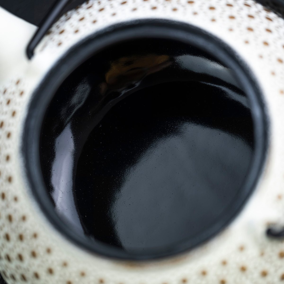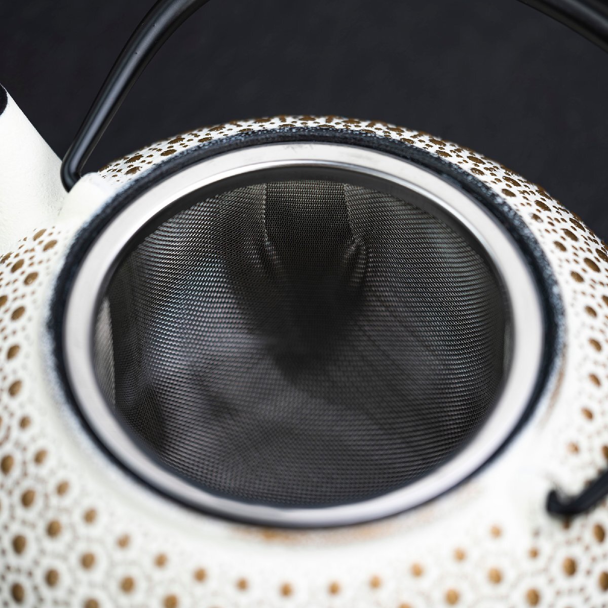ポットの内側がホーロー加工されていて、中にはステンレスの茶こしがセットされてます。