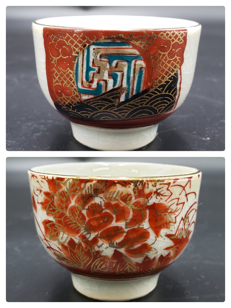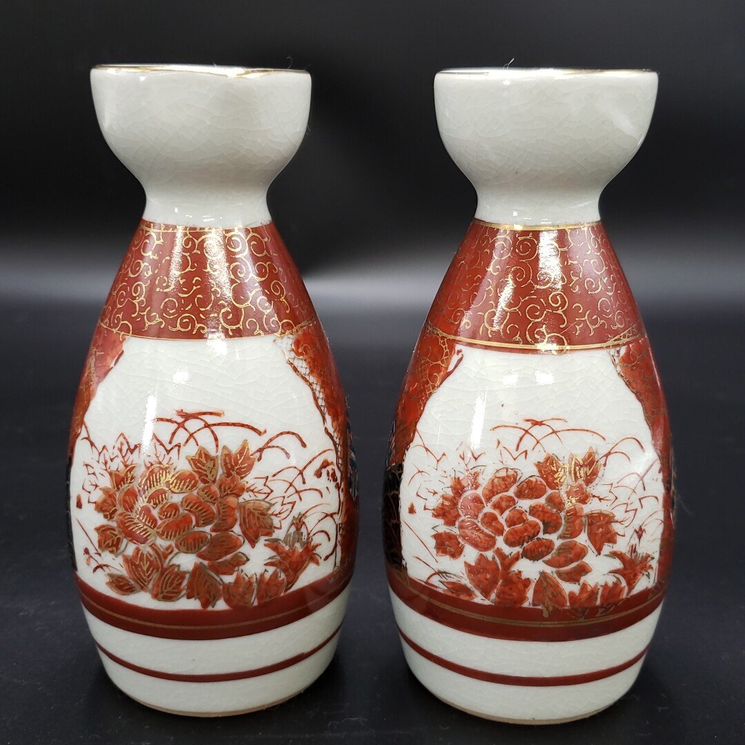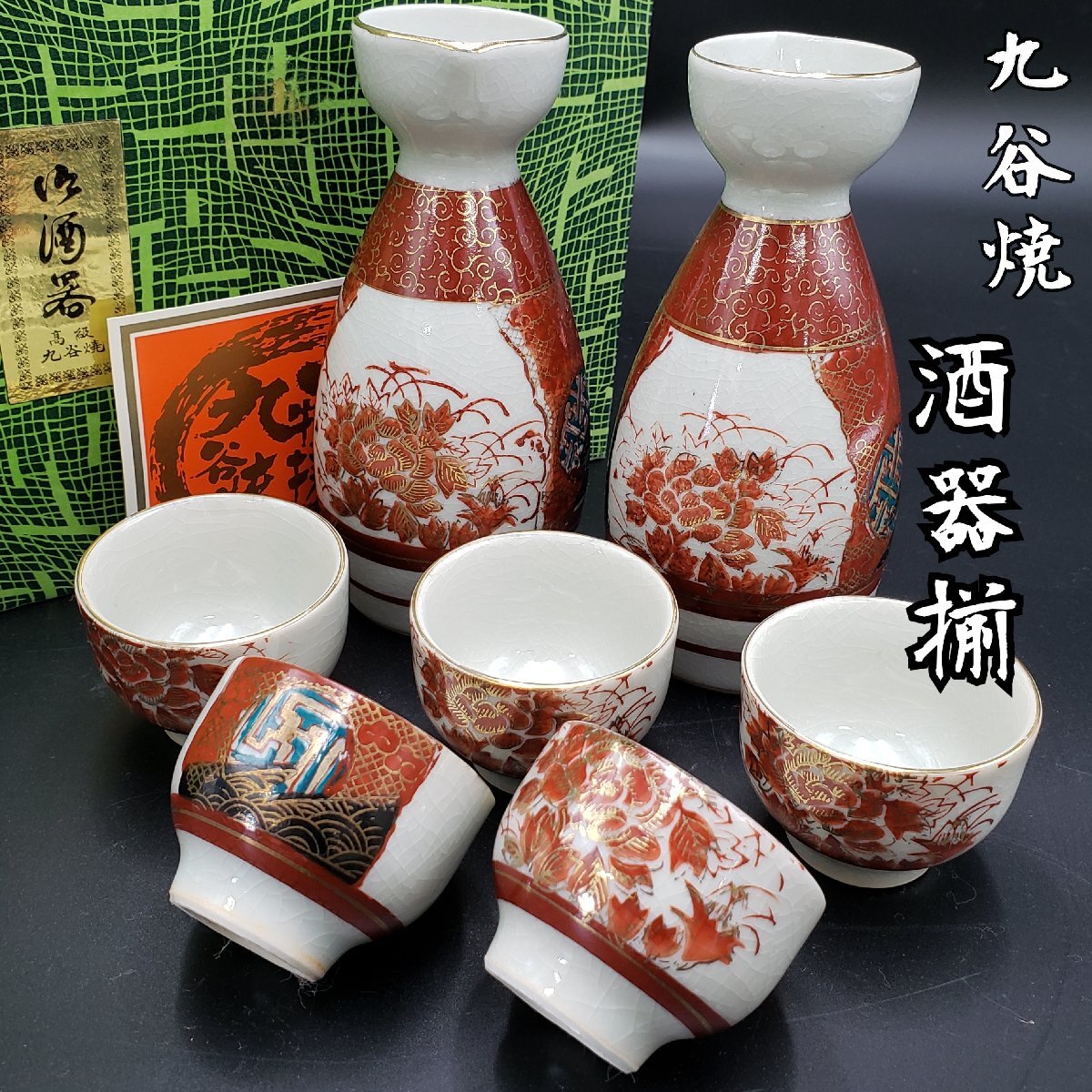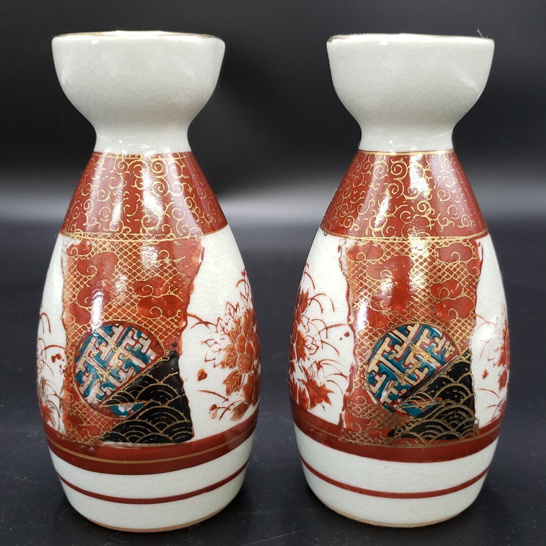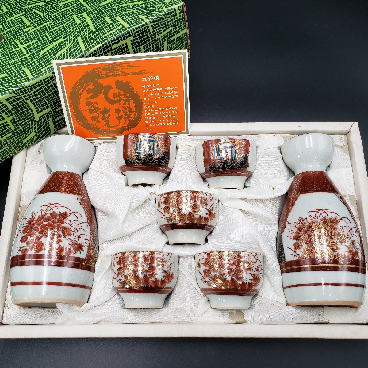九谷焼の華やかな酒器セットです。経年保管によるシミやスレ、キズなどございます。