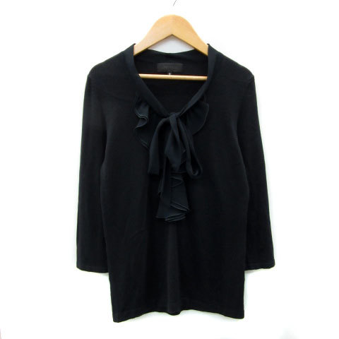 アンタイトル UNTITLED ニット カットソー 長袖 リボン フリル 2 ブラック 黒 /MS21 レディース