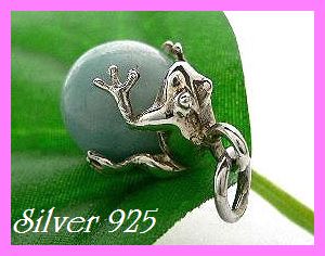 シルバー925銀の天然石アマゾナイト のっかりカエル ペンダント/他石も有り