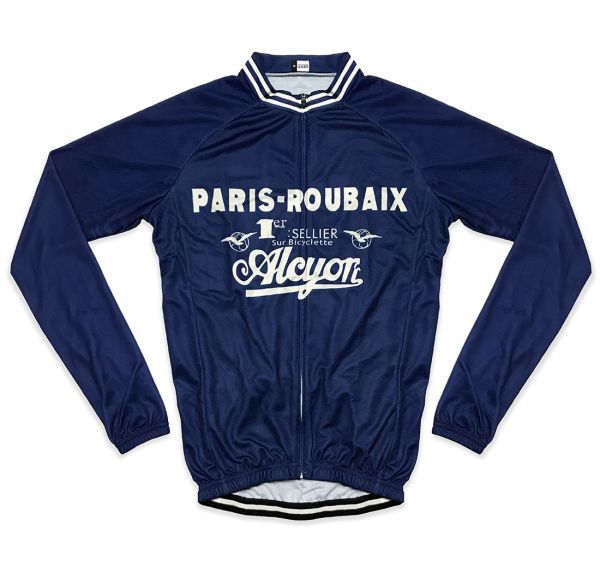 新品 長袖 サイクルジャージ レトロデザイン No42 L フランス フルジップ ウェア メンズ サイクリング フリース ロードバイク MTB