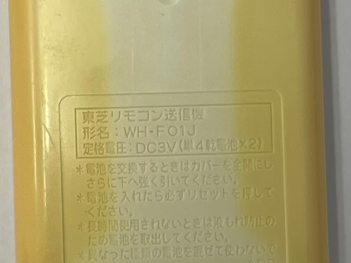 【TOSHIBA WH-F01J 電池付き】リモコンのみの販売です。赤外線チェック済です。