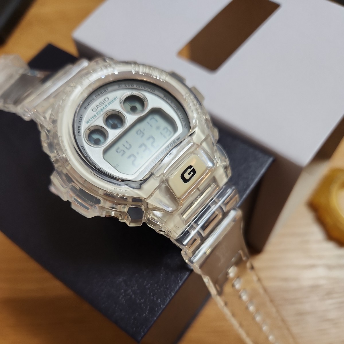 CASIO Gショック 希少モデル イルカクジラ会議モデル 1996年発売生産終了 DW-6900K-8BT 付属品、CASIO専用BOX付 USED、美品 新品のカスタムクリアーベゼル、ベルトを装置しました! オリジナルのベゼル、ベルトも付属致します。