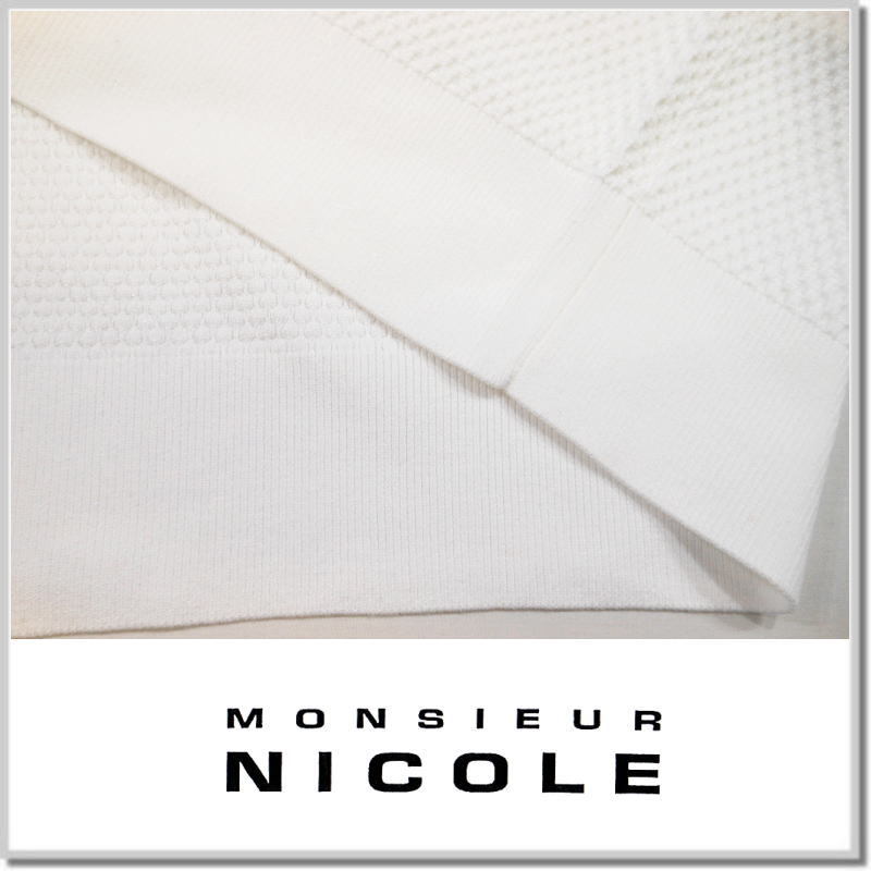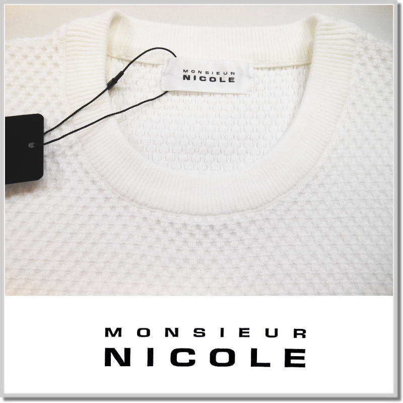 新品未使用! ムッシュニコル MONSIEUR NICOLE ハニカムジャカード クルーネックニット 3462-6000-09(WHITE)-48(L) 丸首セーター
