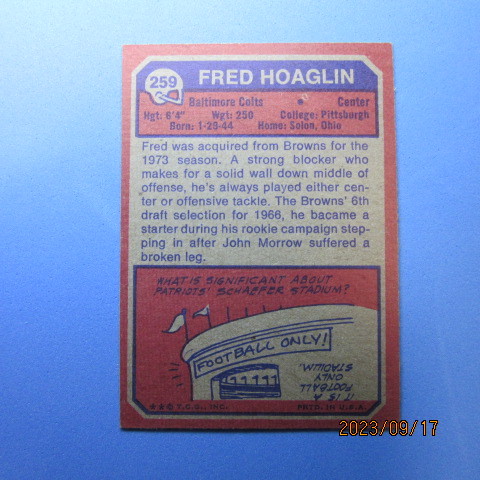 1973 Topps Football #259 Fred Hoaglin
