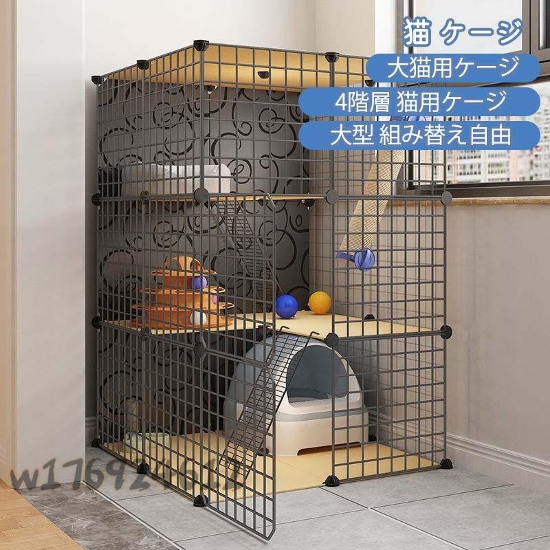大好評☆大猫用ケージ ワイド扉 4段ケージ 大型 折りたたみ キャットケージ 猫飼育セット 猫 ケージ 大きいキャットハウス 4階層