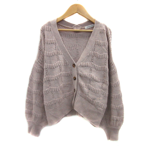 ナイスクラップ ナチュラル クチュール natural couture ニットカーディガン Vネック ショート丈 かぎ編み F くすみピンク レディース