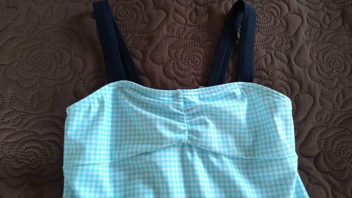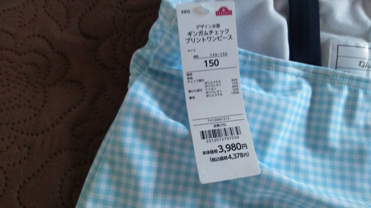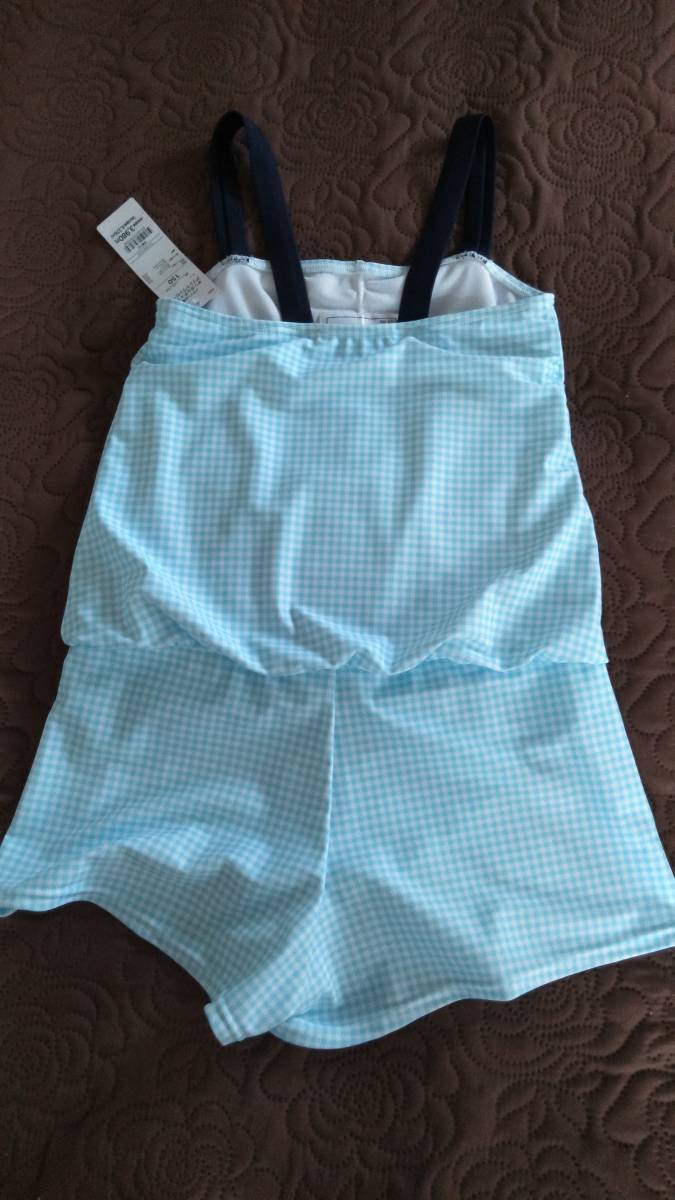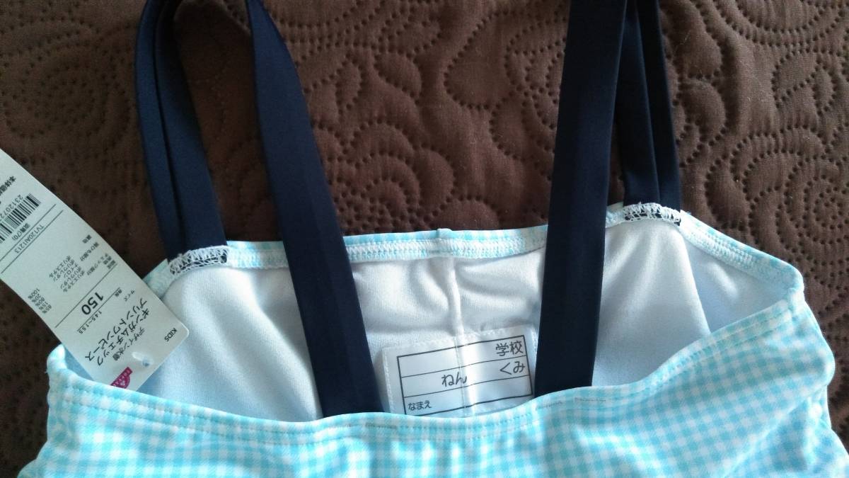 トップバリュ 女児 ガールズ ギンガムチェックプリントワンピース 水着 150cm 水色