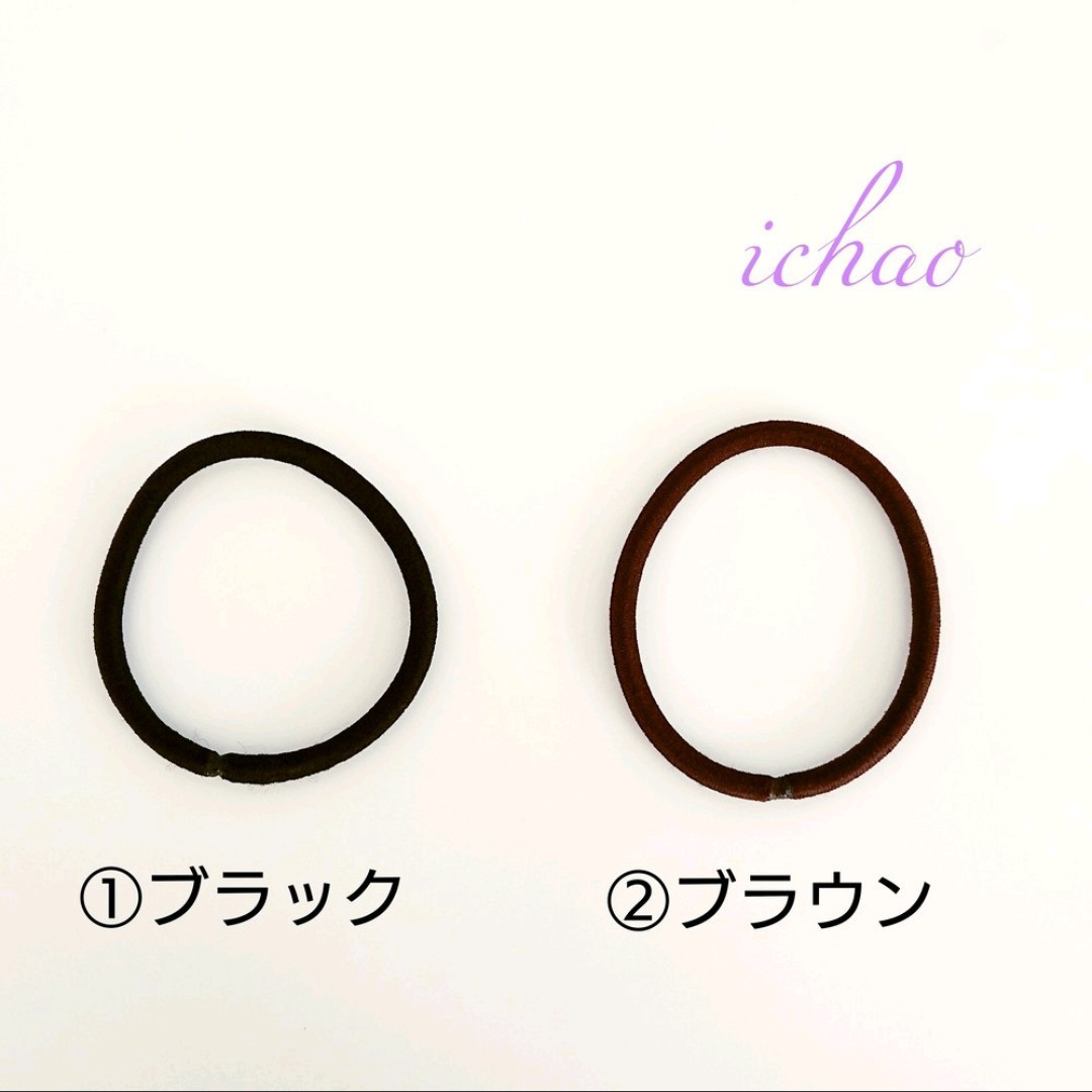 ヘアゴムはU型のボタン足に通してありますので、ゴムが伸びてしまった時やご自分のお好きなヘアゴムにも交換が可能です。