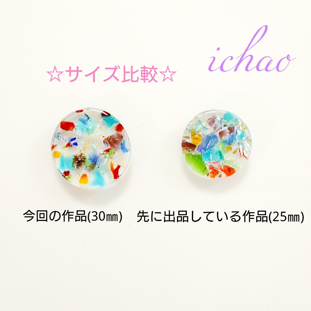 今まで同じデザインのものも出品しておりましたが、もう少し大きいものがあると嬉しいというお声をいただきましたので、新しく30㎜の大きめサイズも出品させていただきました。(今までは25㎜、サイズ比較の画像もございます。)