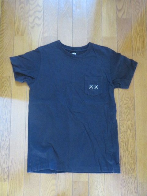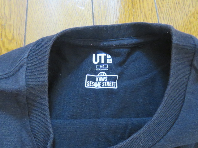 【中古】ユニクロKAWAS半袖Tシャツ 綿100% 160 黒