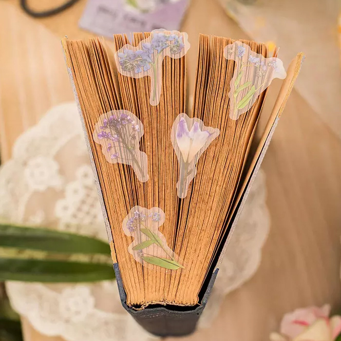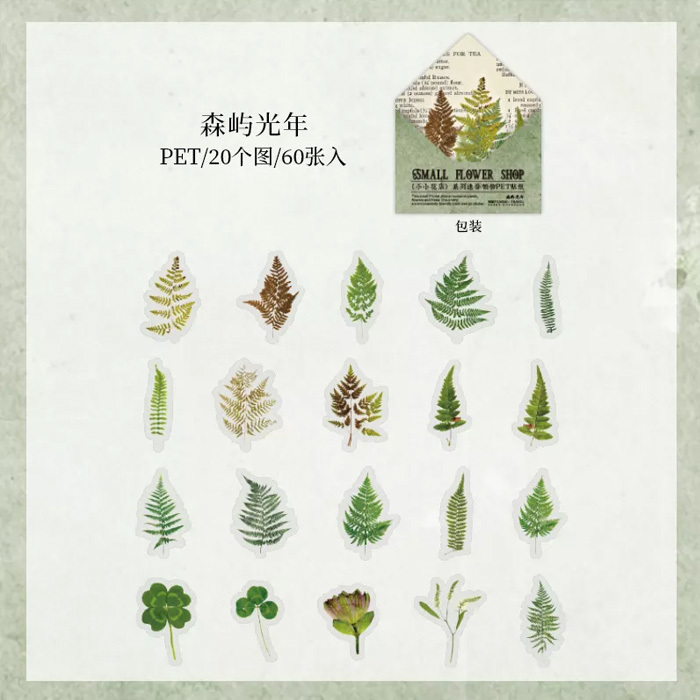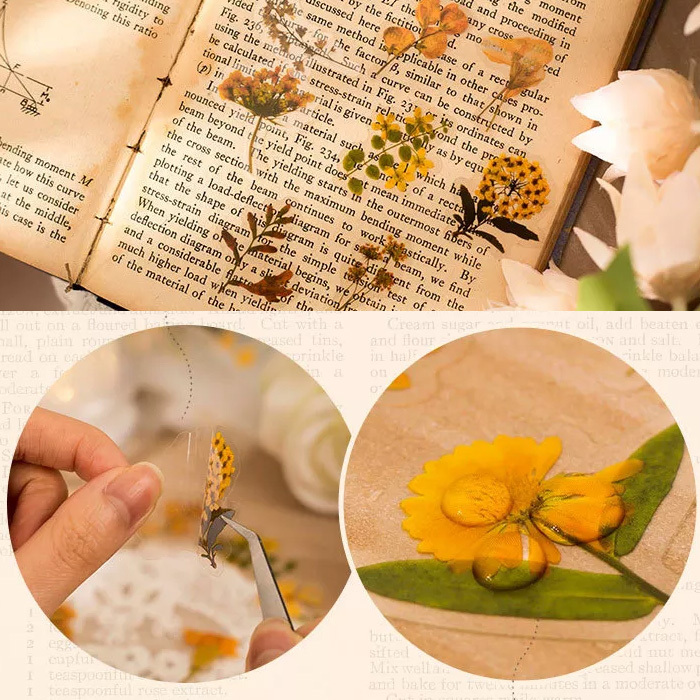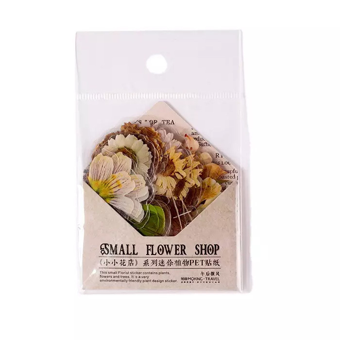 60枚 シール 花 透明 防水 おしゃれ アンティーク ビンテージ デコステッカー アンティーク調 コラージュ レトロ 1077-1