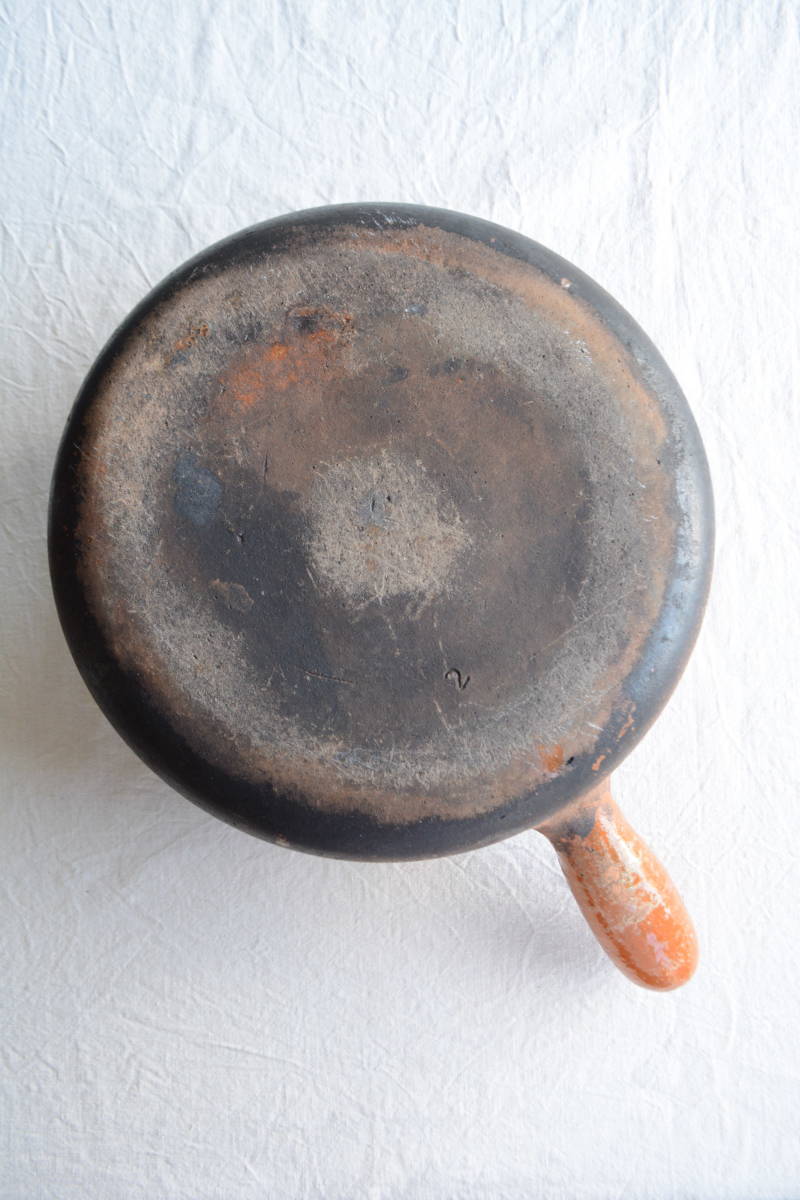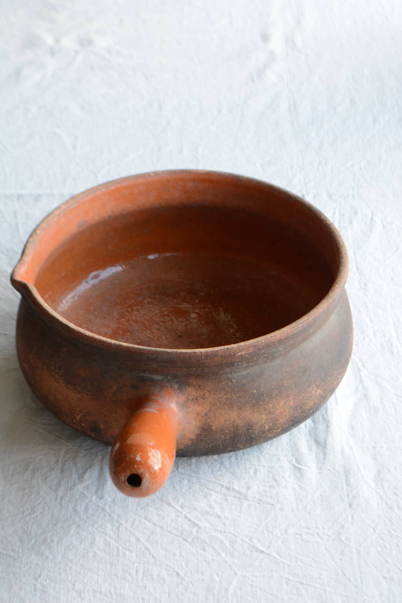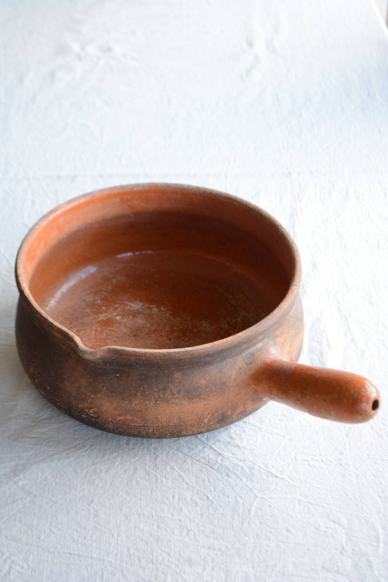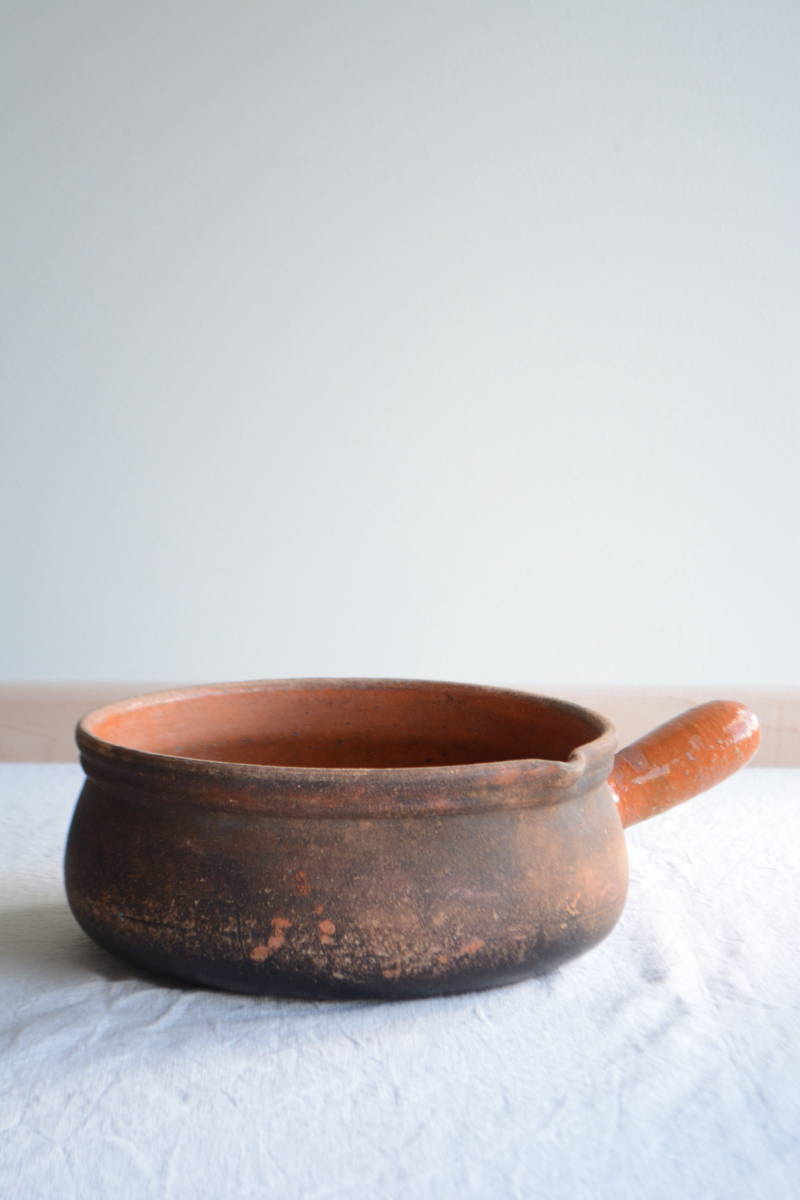 南フランスの19世紀の鍋、その存在はまさに魅力そのものです。そのぽってりとしたフォルムが愛らしいです。この鍋を見ると、フランスの田舎でグツグツと煮込む食事の情景が目の前に広がるように感じられます。