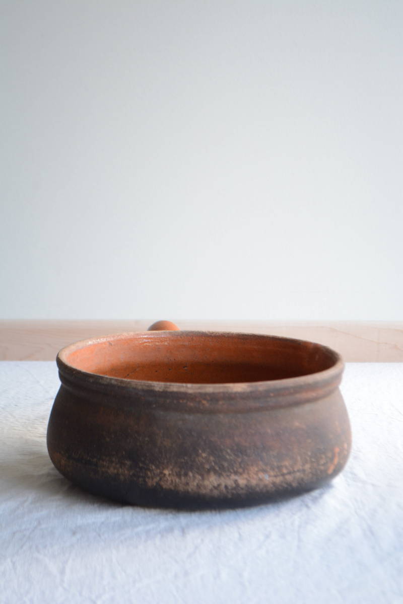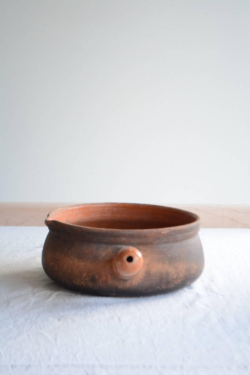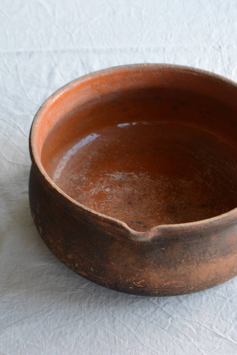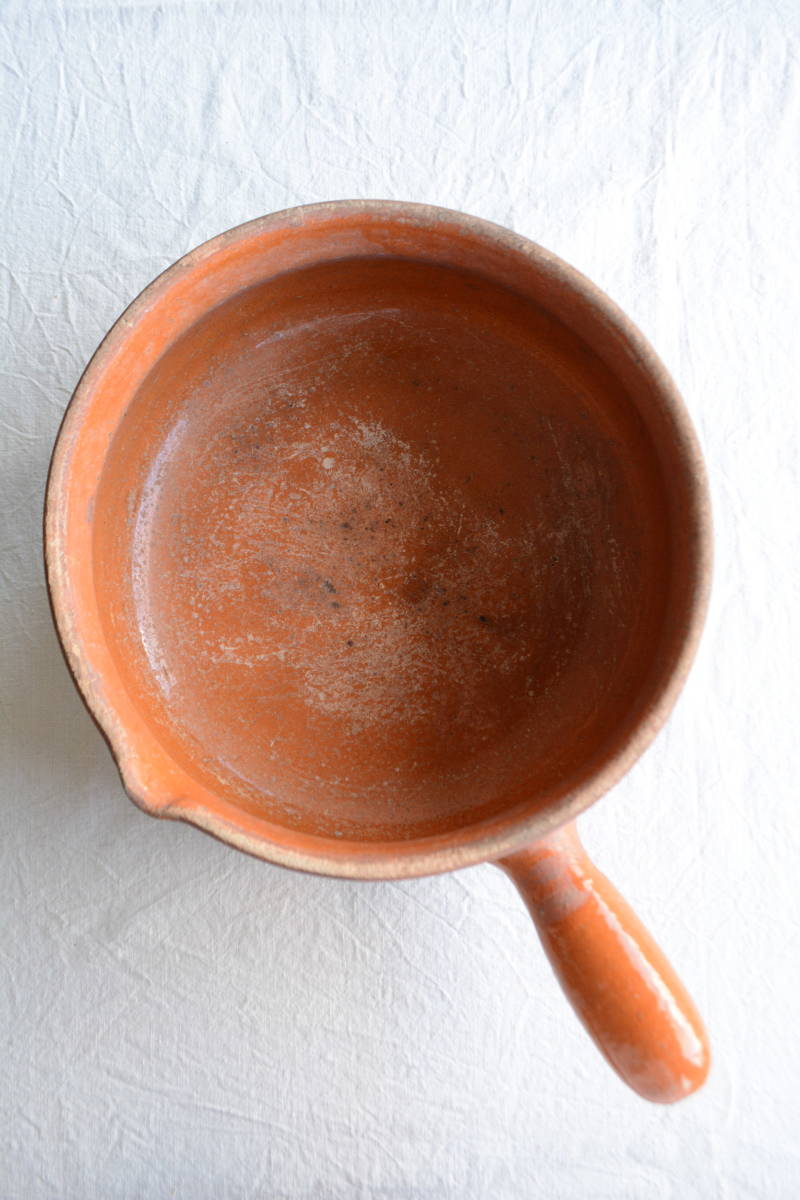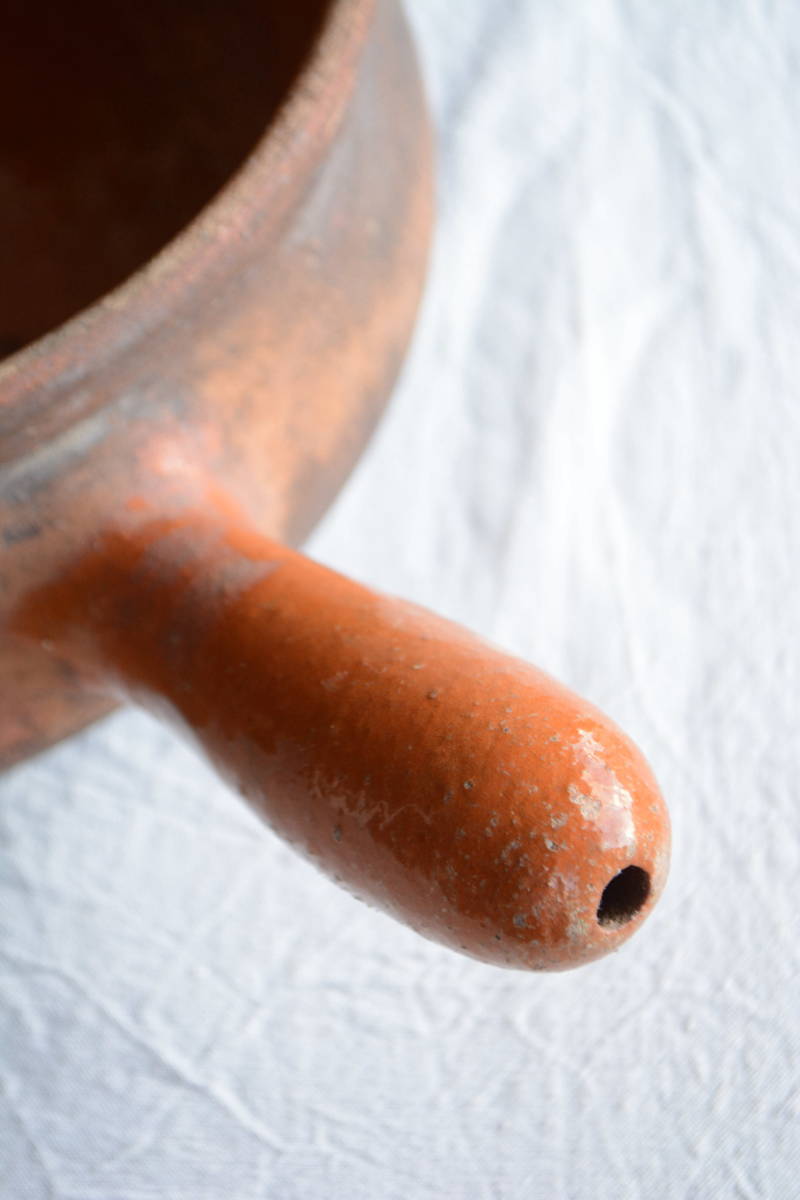 南フランスの19世紀の鍋、その存在はまさに魅力そのものです。そのぽってりとしたフォルムが愛らしいです。この鍋を見ると、フランスの田舎でグツグツと煮込む食事の情景が目の前に広がるように感じられます。
