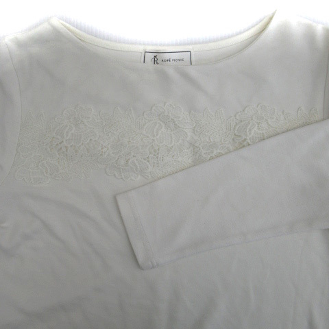 ロペピクニック ROPE Picnic カットソー 長袖 ラウンドネック 刺繍 レース 36 白 ホワイト /SM26 ■MO レディース