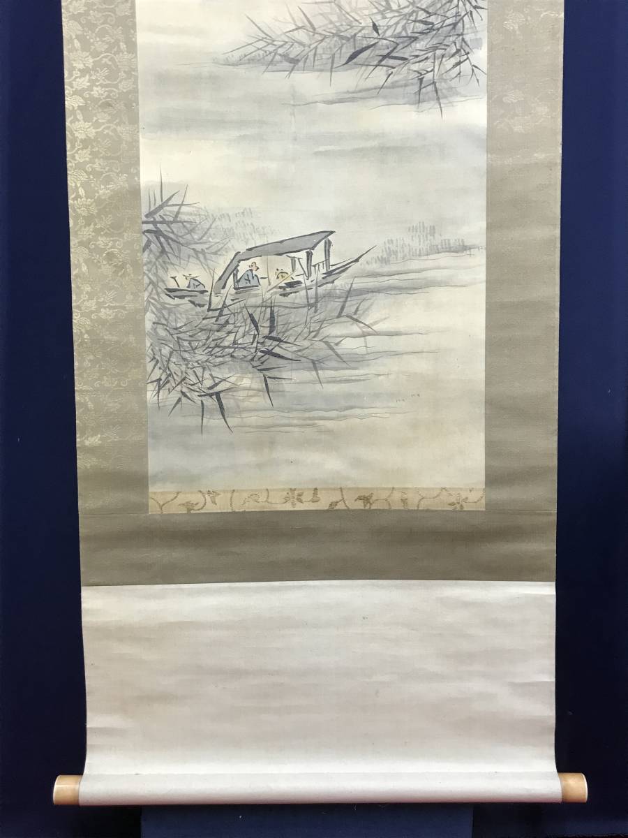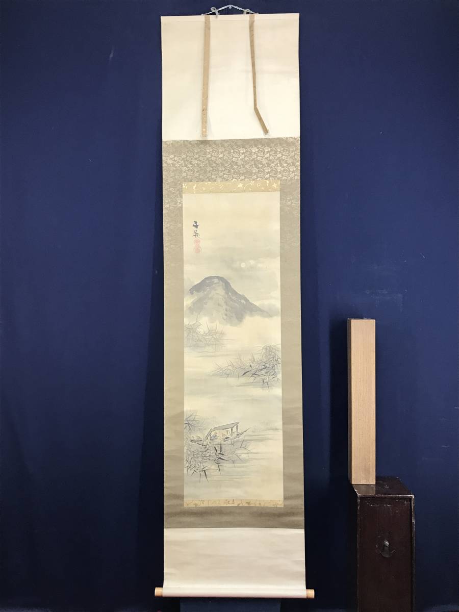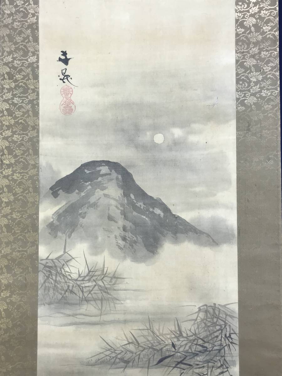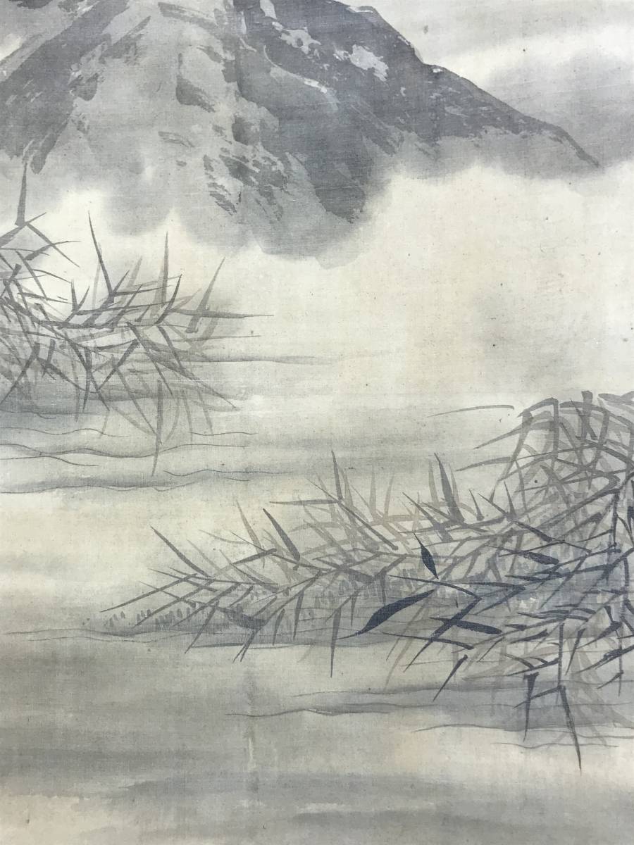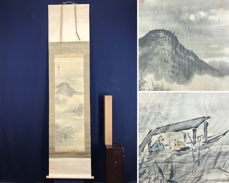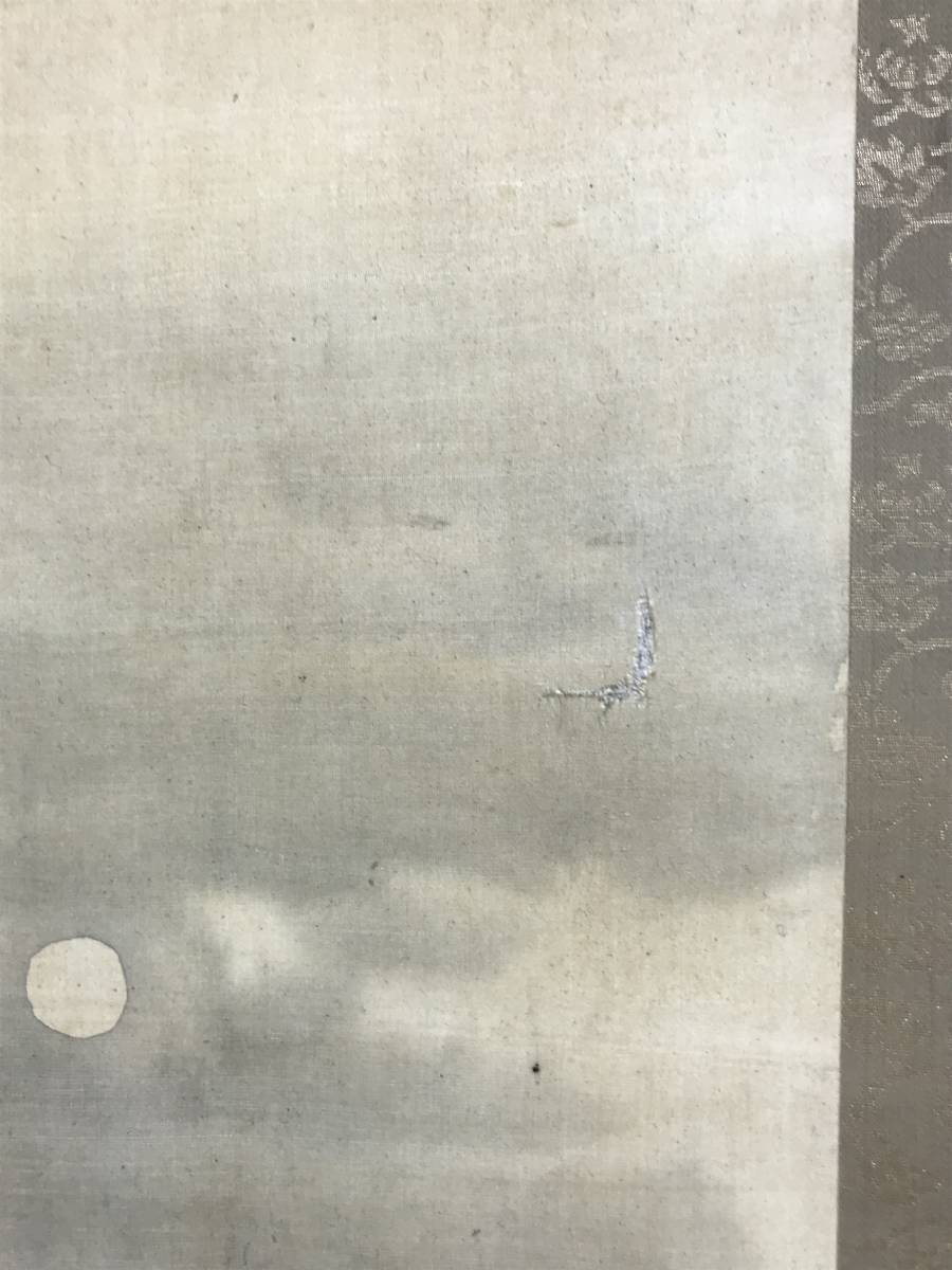 【作品状態】 本紙は絹本肉筆です。  本紙は時代感あり、全体に汚れシミ、小キズ補修痕などあります。表装は絹表装で、天地に汚れシミあります。