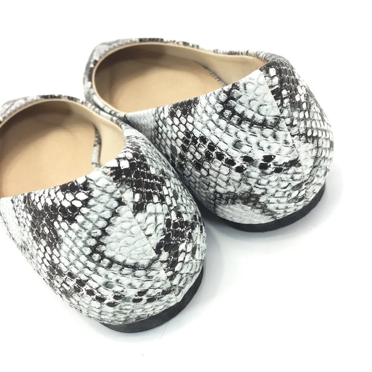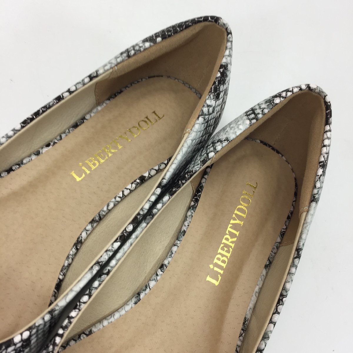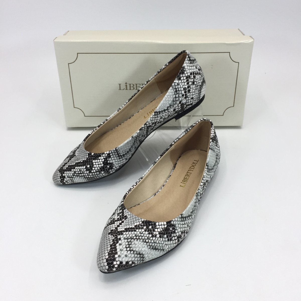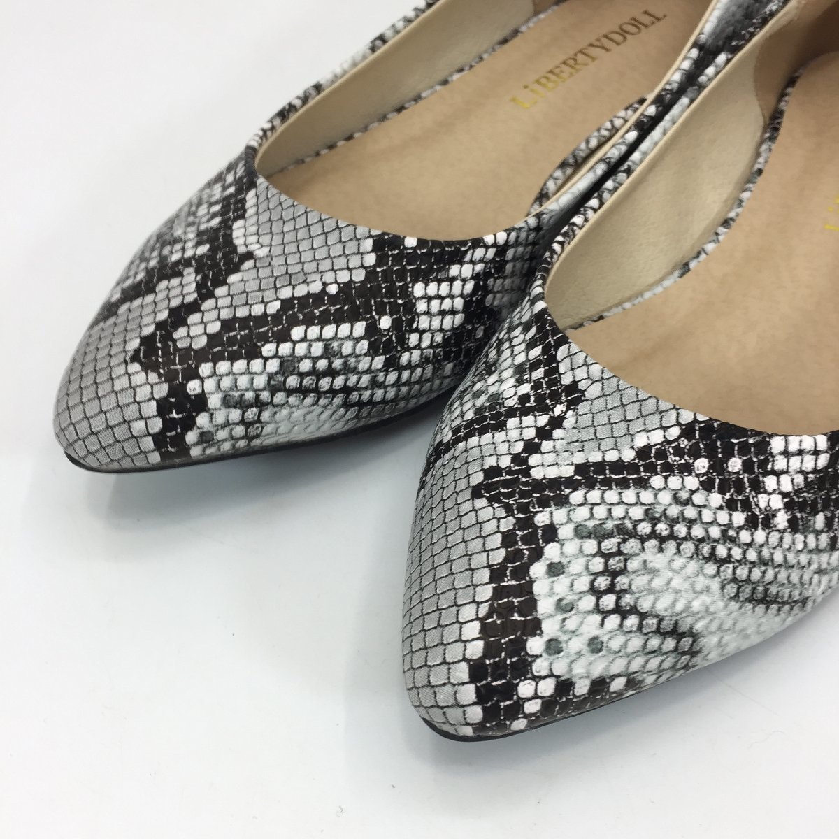 商品名 | 5252-80【 LibertyDoll 】 リバティードール レザー調 ポインテッドトゥ フラット パンプス パイソン柄 22.5cm グレー |