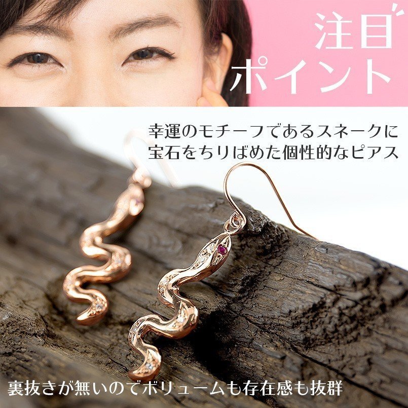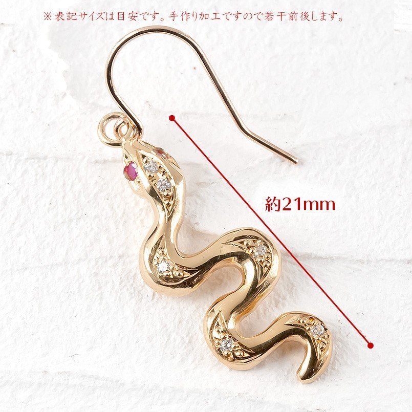 商品コード 200528100drgiu 発送は3週間ほどです材質 ピンクゴールドk10 (品質を保証するk10の刻印)宝石名ルビー 1ミリ 2石天然ダイヤモンド 6石トータル 0.03ctデザインの大きさ 最大幅 約 21ミリ幸運のモチーフであるスネークに宝石をちりばめた個性的なフックピアス裏抜きが無いのでボリュームも存在感も抜群願いを込めて大切な方へのプレゼント 自分へのご褒美にとお買い求め下さいこちら商品は片耳専用です。ペアでお買い求め希望の方は数量2で御購入下さい。ピンクゴールドk10 k10 10k 10金 ピアス フックピアス ルビー ダイヤモンド ダイヤ ギフト対応 人気のデザイン ヘビ 蛇 スネーク アミュレット お守り 記念日や誕生日プレゼント自分へのご褒美にお勧め ピアス レディース 人気 アクセサリージュエリー ジェンダーレス レディースアクセサリー ポイント消化にオススメ ギフト プレゼント 贈り物 フリースタイル ニッケルフリー ピアス 安い ピアスアレルギー対策 ユニセックス 男女兼用 バディジュエリープレゼントとして最適 福袋 30代 40代 50代とりあえず定番なのに お洒落なオリジナルジュエリー