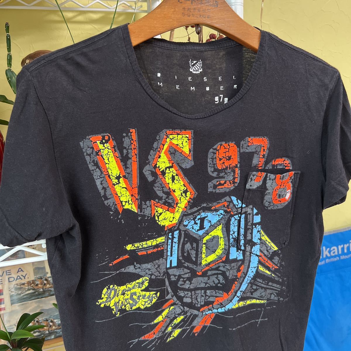 袖丈(脇下縫目〜袖先端)。多少の誤差はお許しください。ピンホール散見しますが良い雰囲気です。さらりとした綿100 大胆プリント ポケットT できる限りダメージは説明させていただきますが、こちらが気づかない程度のわずかなしみ、よごれ、