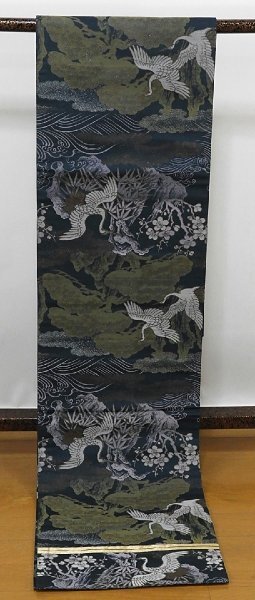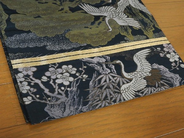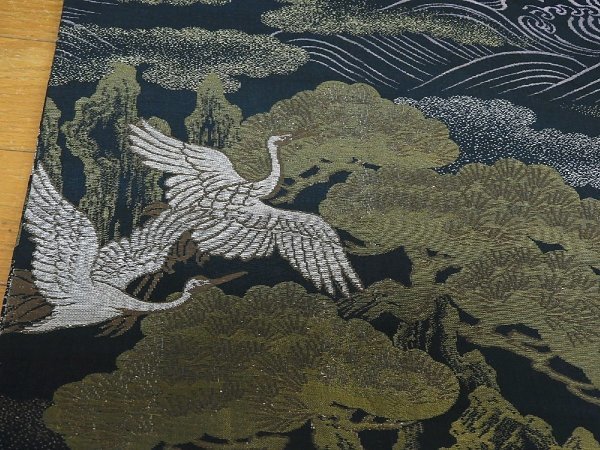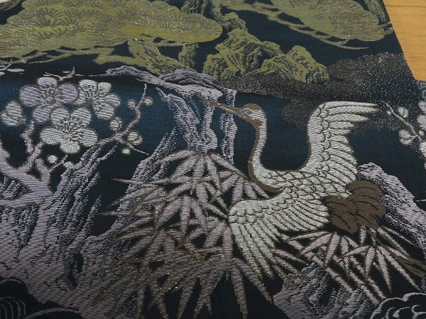 AM155 正絹 アンティーク 丸帯 松竹梅飛び鶴