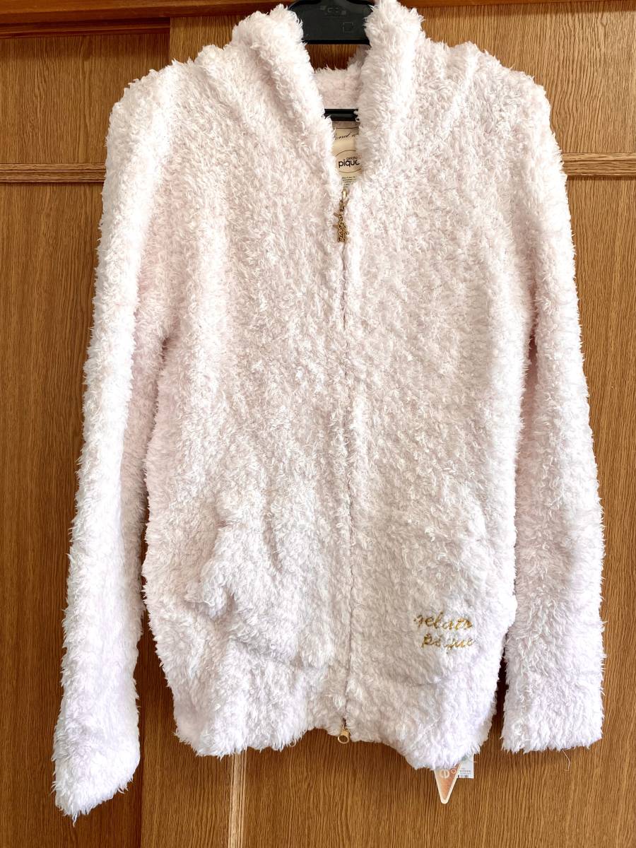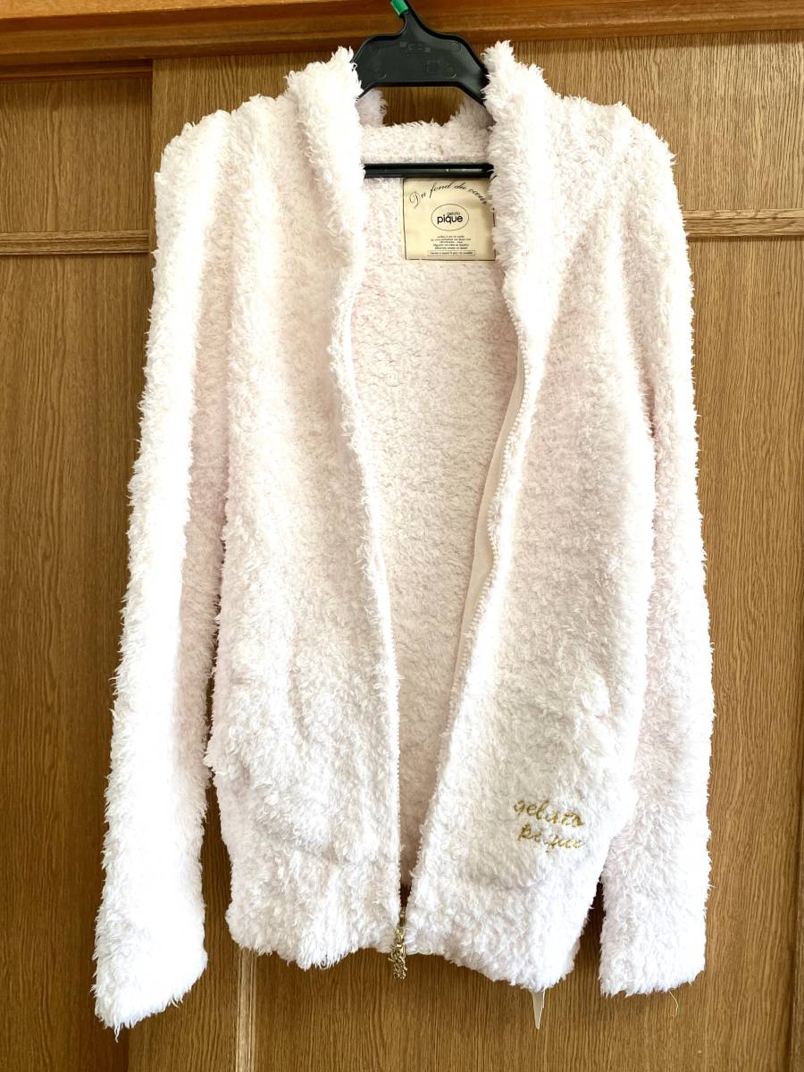 ベビーピンクのふわふわパーカーとフリルのショートパンツのセットです。