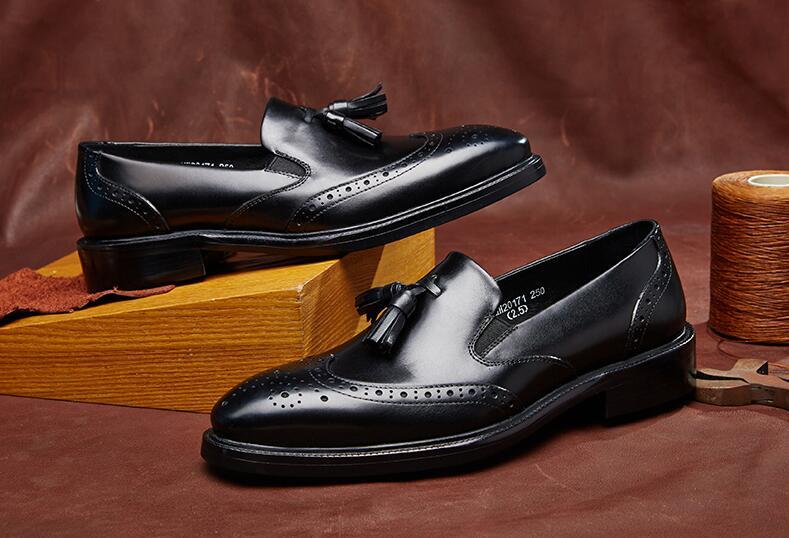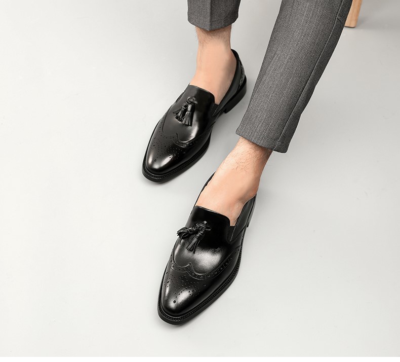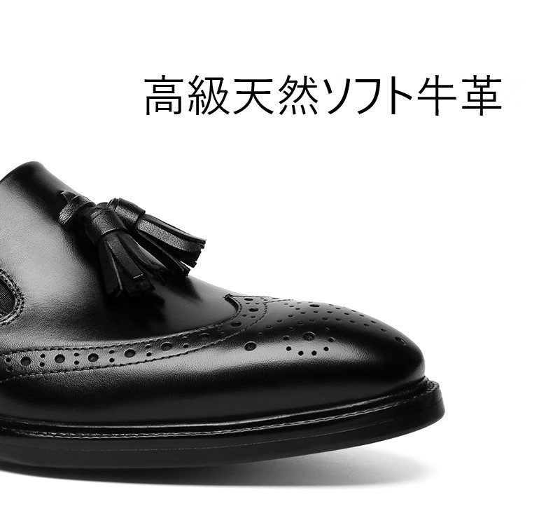 新作◆新品◆メンズ紳士靴本革タッセルローファー スリッポン 牛革 レザー ◆ブラックDJ27cm