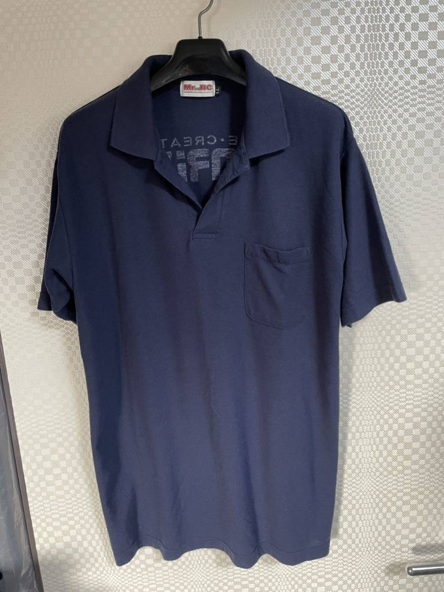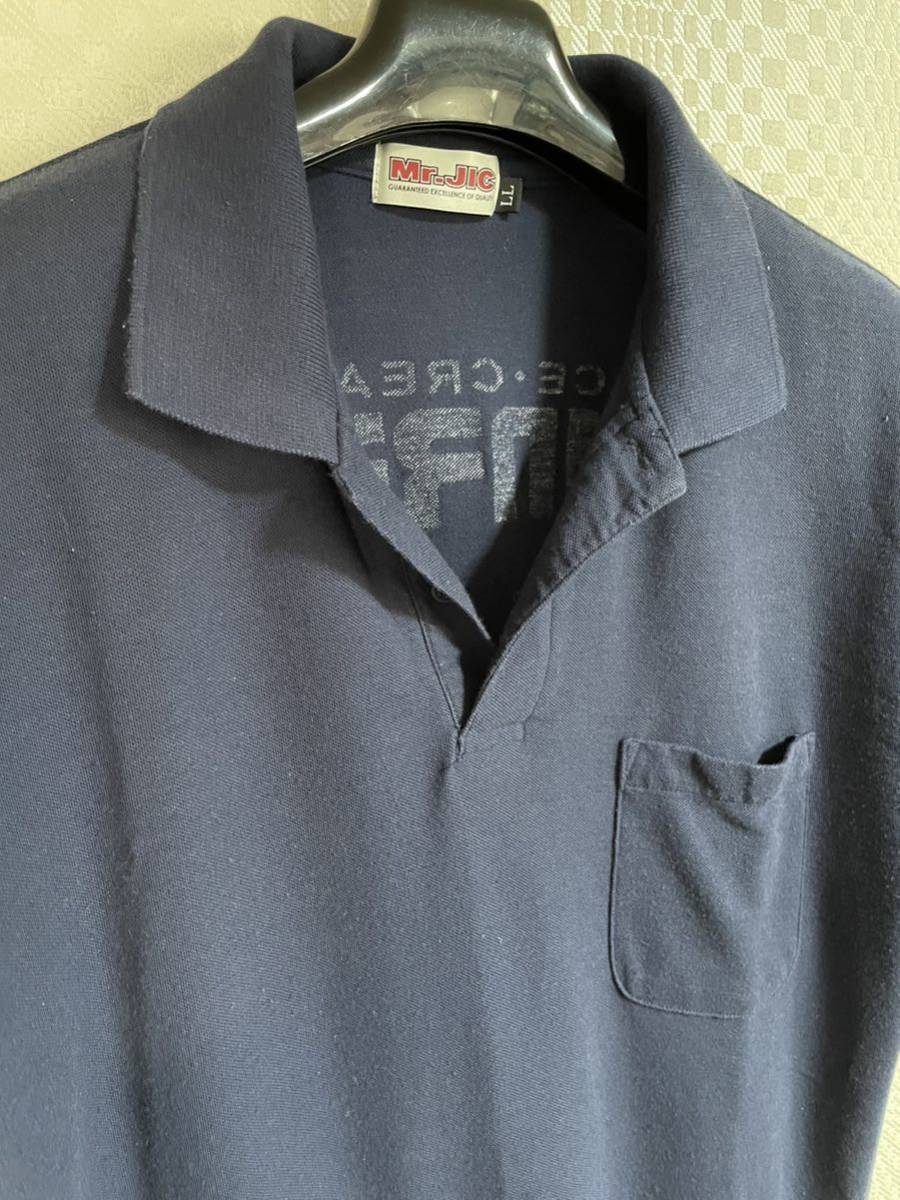 MrJIC ネイビー半袖ポロシャツです。サイズ L L表記で平置き脇下身幅55着丈73肩幅49センチ位です。
