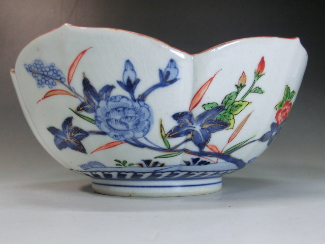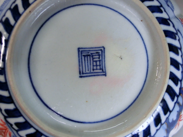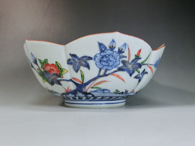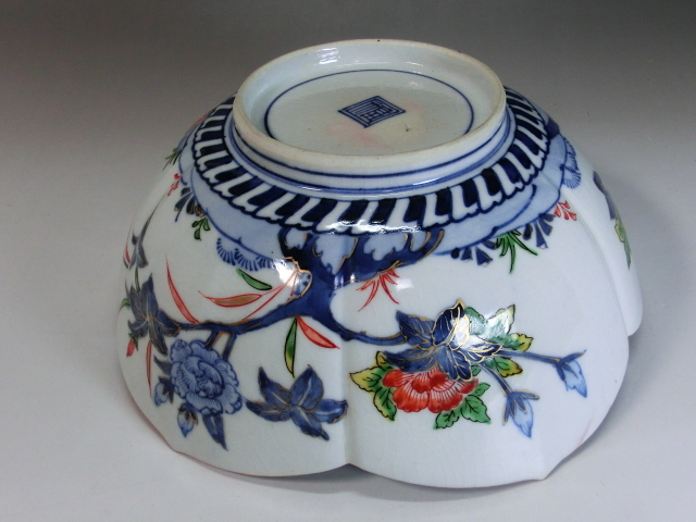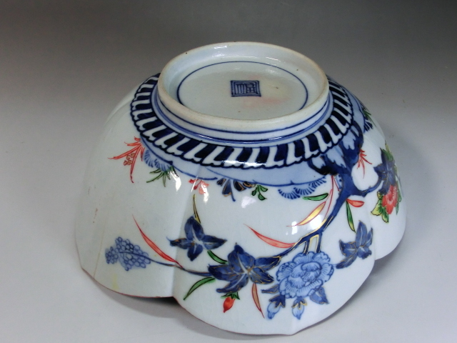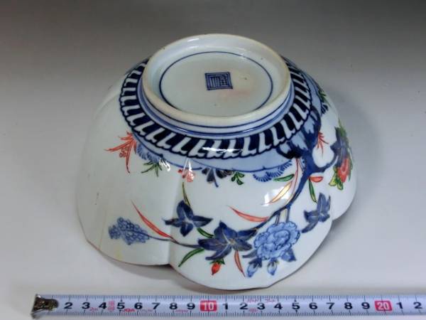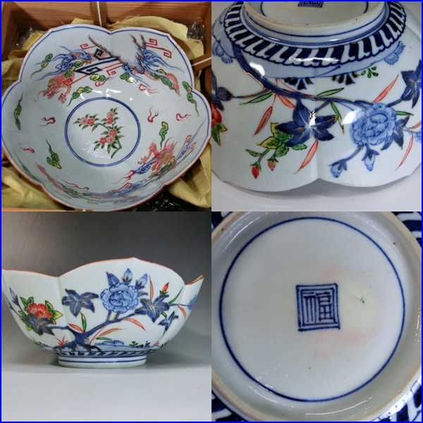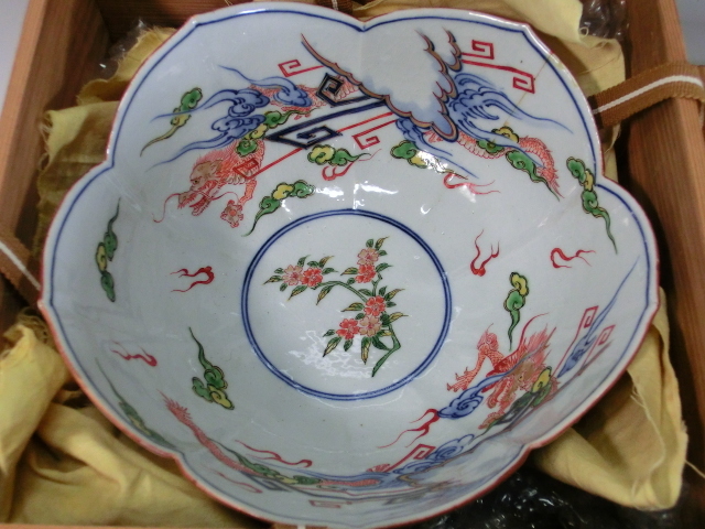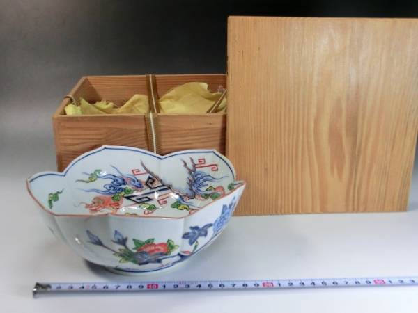 大鉢■角福 古い伊万里花弁型龍紋華尽くし菓子鉢 時代物 骨董品■