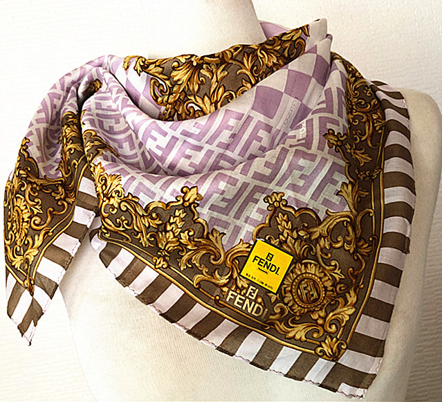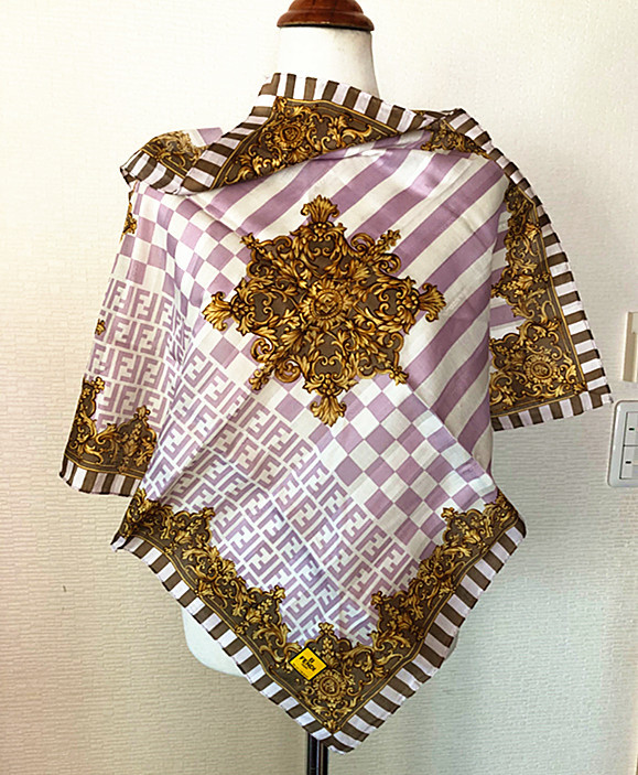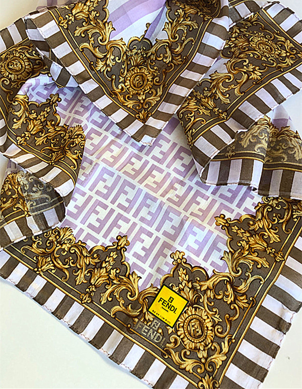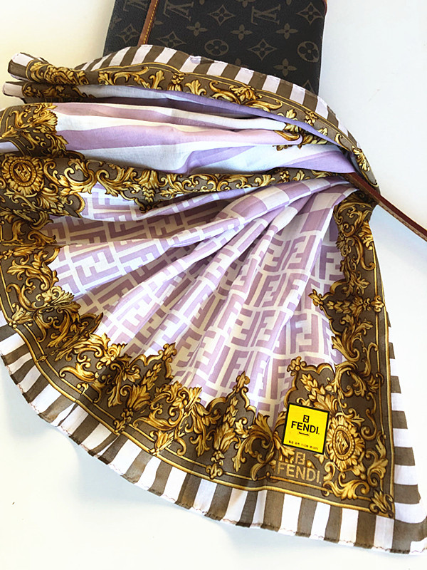 稀少【レア柄】FENDIフェンディ★ズッカ柄★大判ハンカチ ミニスカーフ★膝掛け(0724E81899)